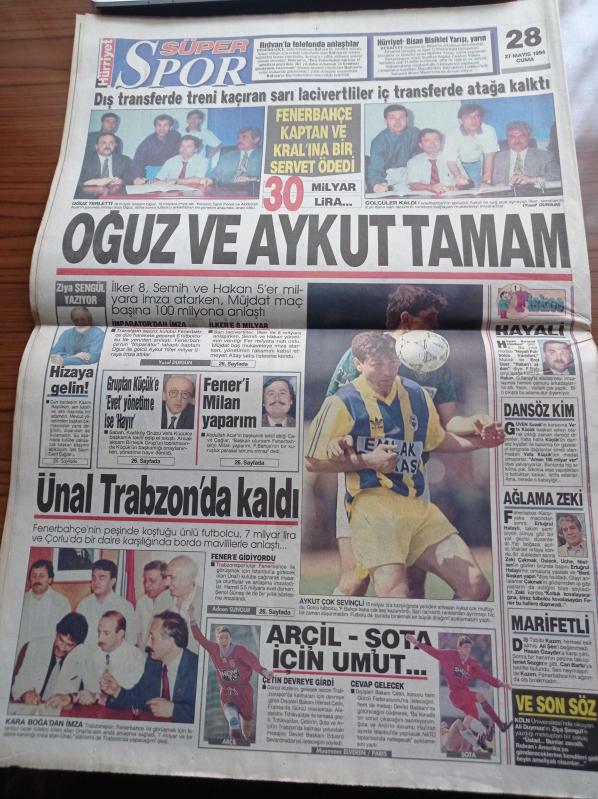 Hürriyet Gazetesi - 27 Mayıs 1994 - Trabzonspor'da Şota Arçil Umudu - Fenerbahçe'de Oğuz Çetin Aykut Kocaman Tamam - Yekta Güngör Özden'e Ağır Suçlama - İçişleri Bakanı Nahit Menteşe'ye Dayak Gensorusu - DEP Başbakan Tansu Çiller Yargıya Müdahale Etti - Hatip Dicle - Melih Gökçek'e Soruşturma - PKK'nın Adam Kaçırma Tekneleri Ele Geçirildi - Kaçak Banker Şahap Berker Yakalandı - Medyum Memiş'e Sahtecilikten Suç Duyurusu adlı eser, Kitap > Süreli Yayınlar > Gazeteler kategorisinde İkinci El olarak satıştadır.