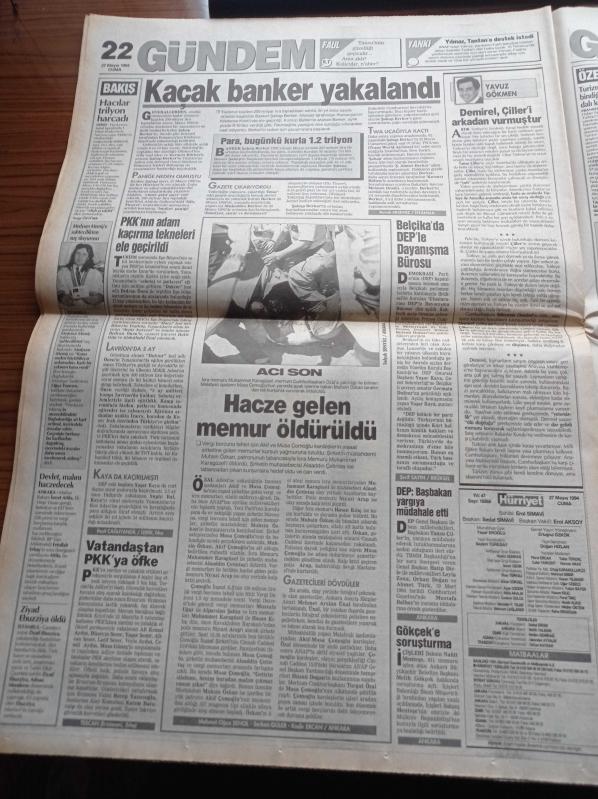Hürriyet Gazetesi - 27 Mayıs 1994 - Trabzonspor'da Şota Arçil Umudu - Fenerbahçe'de Oğuz Çetin Aykut Kocaman Tamam - Yekta Güngör Özden'e Ağır Suçlama - İçişleri Bakanı Nahit Menteşe'ye Dayak Gensorusu - DEP Başbakan Tansu Çiller Yargıya Müdahale Etti - Hatip Dicle - Melih Gökçek'e Soruşturma - PKK'nın Adam Kaçırma Tekneleri Ele Geçirildi - Kaçak Banker Şahap Berker Yakalandı - Medyum Memiş'e Sahtecilikten Suç Duyurusu adlı eser Türkçe dilindedir.