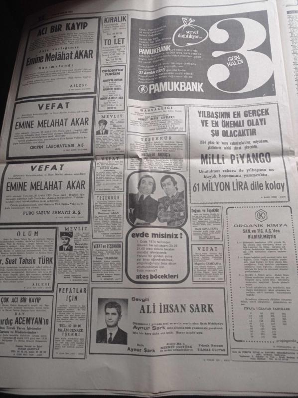 Hürriyet Gazetesi - 28 Aralık 1973 - İsmet İnönü Paşa'yı Toprağa Veriyoruz - Mevhibe İnönü'nün Acısı Sonsuz - Cenaze Töreni TV Ve Radyoda Yayınlanacak - Ömer İnönü - Özden Toker - İsmet İnönü'nün Son Yolculuğunda 8 General İle Harbiyeliler Top Arabasının Yanında Yürüyecek - Koç Topluluğu Halka Açıldı - Ateş Böcekleri - Fenerbahçe Almanya'ya Gidiyor adlı eser Türkçe dilindedir.