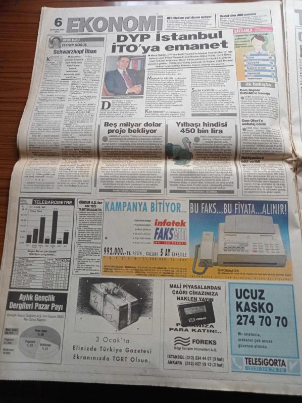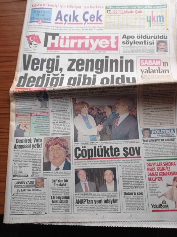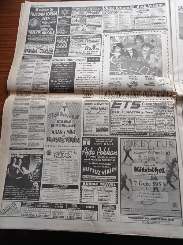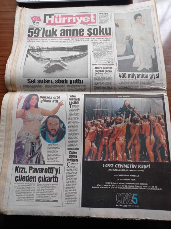 Hürriyet Gazetesi - 28 Aralık 1993 - Bülent Ersoy'a 400 Milyonluk Giysi - Kızı Pavarotti'yi Çileden Çıkardı - Halil Mutlu Bulgaristan'da Ailesiyle Hasret Giderdi - Oğuz Çetin Altın Bir Devir Yaşıyoruz - Abdullah Öcalan Öldürüldü Söylentisi - Başbakan Tansu Çiller Bedrettin Dalan'ı İstanbula Armağan Etti - Süleyman Demirel Veto Anayasal Yetki - Vergi Zenginin Dediği Gibi Oldu adlı eser, Kitap > Süreli Yayınlar > Gazeteler kategorisinde İkinci El olarak satıştadır.