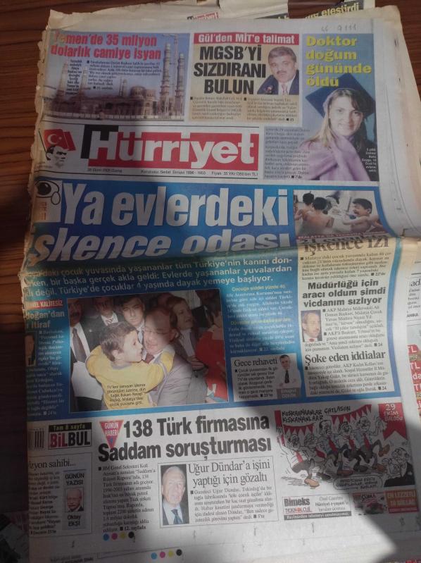Hürriyet Gazetesi - 28 Ekim 2005 - Galatasaray Türkiye Kupasında Mersin İdmanyurdu'nu Rahat Geçti - Abdullah Gül'den MİT'e Talimat Milli Güvenlik Siyaset Belgesini Sızdıranı Bulun - Malatya'da Çocuk Yuvasında Yaşananlar Tüm Türkiye'nin Kanını Dondurdu - Sağlık Bakanı Recep Akdağ - Uğur Dündar'a İşini Yaptığı İçin Gözaltı - 138 Türk Firmasına Saddam Soruşturması - Malatya Çocuk Yuvasında İşkence İzi - Recep Tayyip Erdoğan'dan Acı İtiraf adlı eser Türkçe dilindedir.
