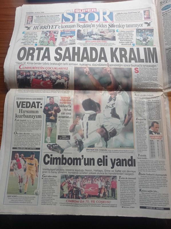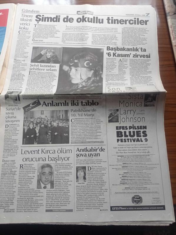 Hürriyet Gazetesi - 29 Ekim 1998 - Cumhuriyet'in 75. Yılı Kutlu Olsun - Beşiktaş'ın Yıldızı Şifo Mehmet - Fenerbahçe Başkanı Aziz Yıldırım Futbolculara Hepinizi Satarım - Süleyman Seba Türk Futbolu Ata'sının İzinde - Fazilet Partili Ağrı Belediye Başkanı Zeki Başaran Atatürk'e Hain Dedi - Genelkurmay Başkanı Orgeneral Hüseyin Kıvrıkoğlu Atatürkçüler Yılmayın - Bakire Bakan Fıkrası - Yıldırım Aktuna - Cavit Kavak - Alaattin Çakıcı Korkmaz Yiğit Türkbank İlişkilerine Açıklık Getirildi - Başbakan Mesut Yılmaz - Abdullah Öcalan Artık Ermenistan'da adlı eser Türkçe dilindedir.