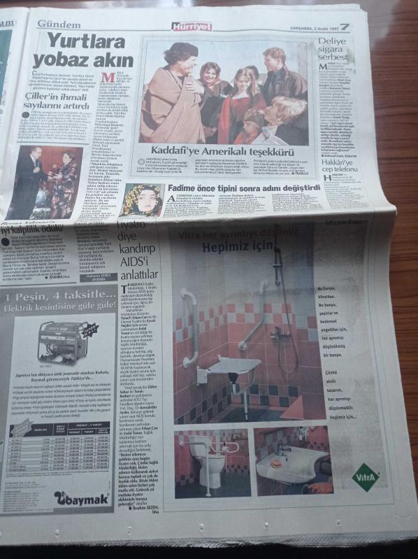 Hürriyet Gazetesi - 3 Aralık 1997 - Alpay Özalan Ve Tugay Kerimoğlu'na Haciz Şoku - Koç İle Metro Ortaklığı - Muammer Kaddafi - Fenerbahçe'nin Kupa Şovu - Türk İş - Hak İş - Aczmendi Lideri Müslüm Gündüz -Şemdin Sakık Mum Gibi Eridik - Pamela Anderson'un Seks Kaseti İnternette - Fadime Şahin İsmini Değiştirdi - Gülben Ergen - Deniz Baykal- Mesut Yılmaz adlı eser Türkçe dilindedir.