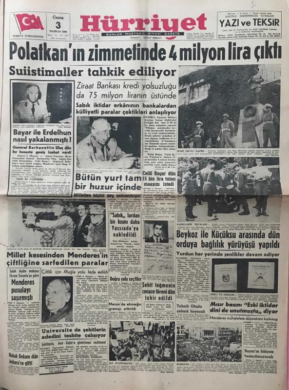 Hürriyet Gazetesi - 3 Haziran 1960 Cuma - (Polatkan'ın Zimmetinde 4 Milyon Lira Çıktı-Suistimaller Tahkik Ediliyor) Tüm gazetelerimiz eksiksiz ve tamdır. Gazetenin tamamı gönderilir. En:43 - Boy:58 5 Sayfa