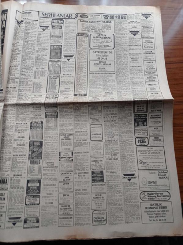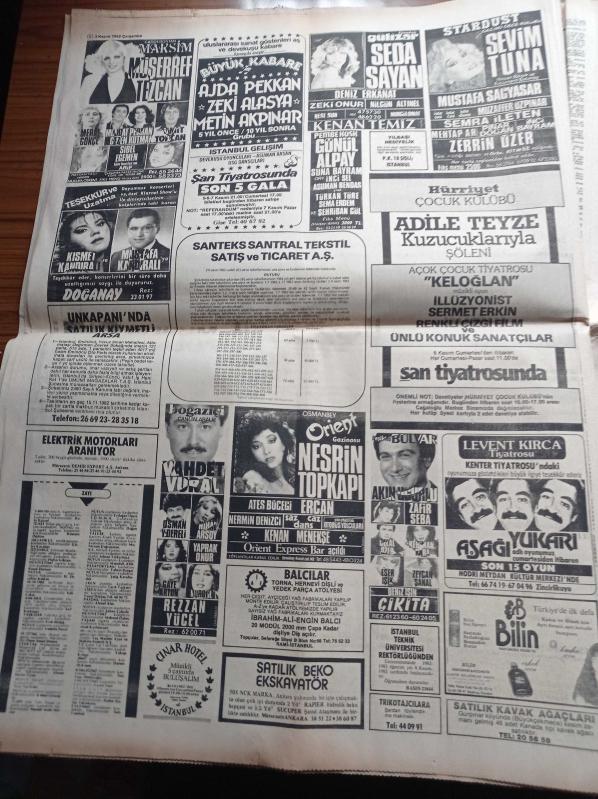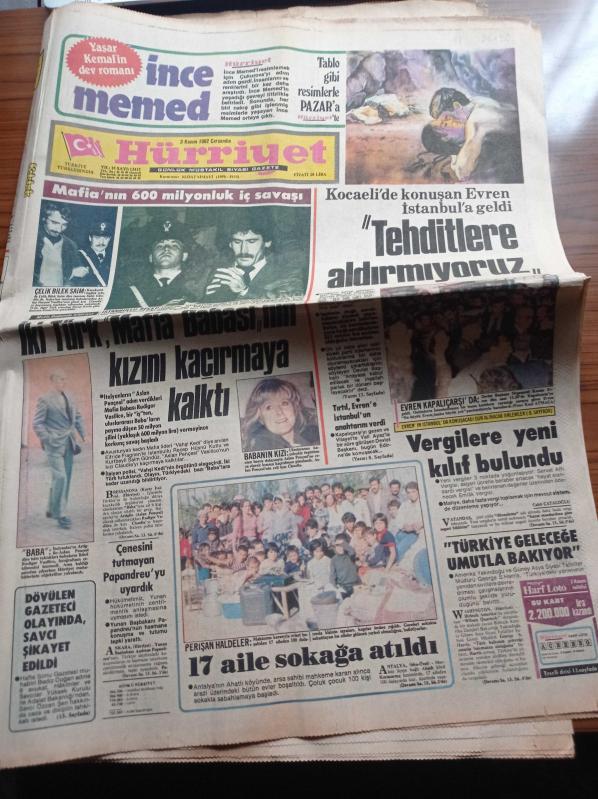 Hürriyet Gazetesi - 3 Kasım 1982 - Fransızlar Yaşar Kemal'i Övüyor - Mehmet Ali Ağca Annesiyle Görüşebilir - Dev Sol Liderleri Sinan Kukul Bedri Yağan - Tarık Akan - Fatma Girik G Şampiyon Boksörler Bir Yıl Özel Beslenecek - Çelik Bilek Saim Gündüz - Kenan Evren Kapalıçarşı'da - İki Türk Mafya Babasının Kızını Kaçırmaya Kalktı adlı eser Türkçe dilindedir.