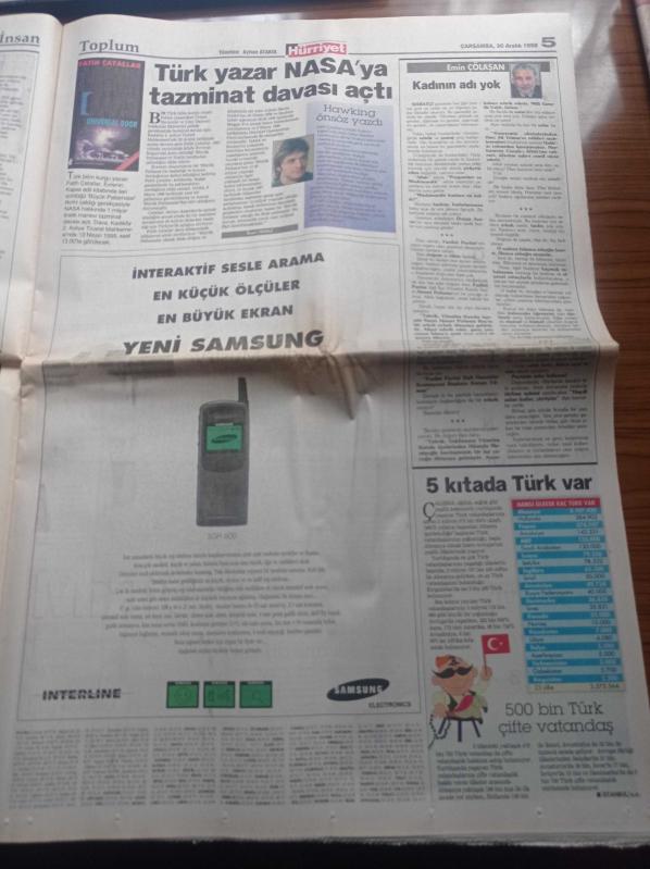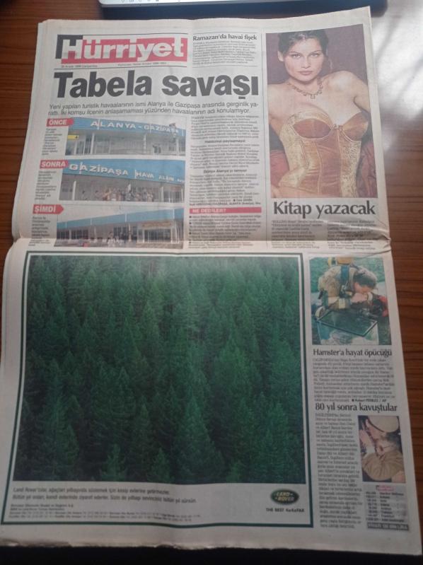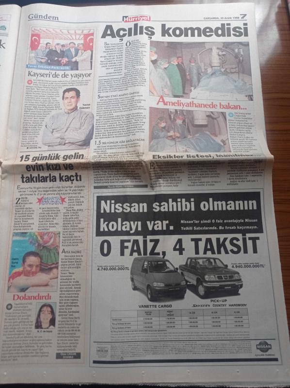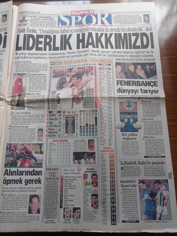 Hürriyet Gazetesi - 30 Aralık 1998 - Bir Solukta Galatasaray - Atletico Madrid Elvir Baliç'in Peşinde - Fenerbahçe Dünyayı Tarıyor - Hakan Şükür - Türkiye'nin Gücü Kıbrıs Rum Yönetimi S 300 Füzelerinin Adaya Getirilmemesi Kararını Aldı - Yalım Erez Hükümetinin Anahtarı Deniz Baykal'da - Recai Kutan - Erdemir 1 Dolara Fabrika Aldı - Tansu Çiller - Edyta Mustafa Sandal'a Hayran Kaldı - Karahan Çantay - Çağla Şikel adlı eser Türkçe dilindedir.