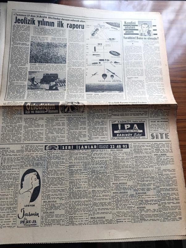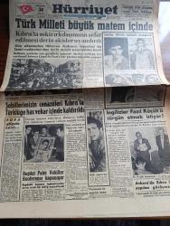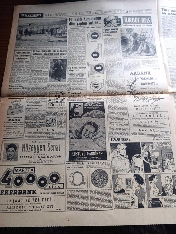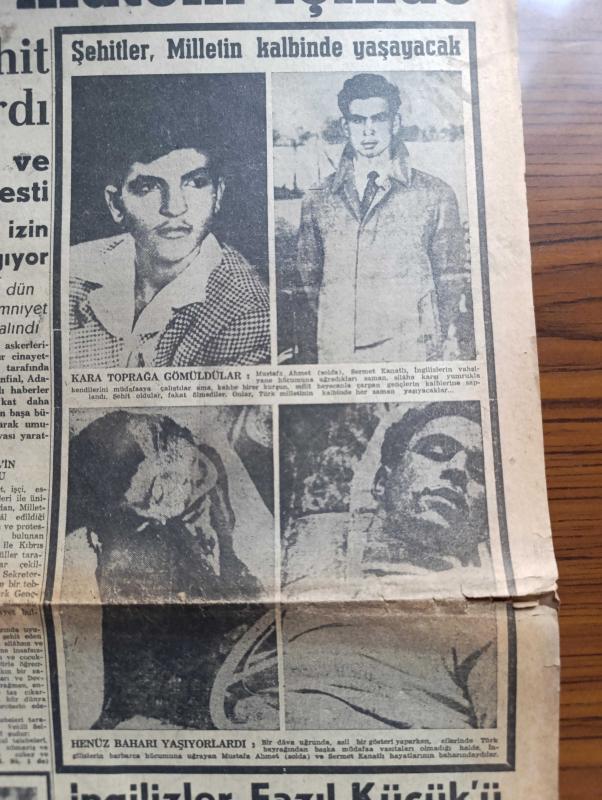 Hürriyet Gazetesi - 30 Ocak 1958 - Türk milleti büyük matem içinde - Kıbrıs'ta 8 yurttaşımızın şehit edilmesi derin akisler uyandırdı - şehitlerimiz Mustafa Ahmet ve Sermet Kanatlı fotoğraf - şehitlerimizin cenazeleri Kıbrıs'ta türklüğe has vekar içinde kaldırıldı fotoğraf - İngilizler Fazıl küçük'ü sürgün etmek istiyor - Doktor Fazıl Küçük konuşuyor fotoğraf - yerli röntgen filmi yapacak fabrika hazır - jeofizik yılının ilk raporu - aşk ve macera romanı özlediğim yazan Bedia Altınay yazı dizisi - Orhan Köprülü bir manevi kalkınma Kongresi teklif ediyor - Et Balık kurumu'nun dün yaptığı azizlik hastane ve okullar etsiz kaldı - Müzeyyen Senar her akşam Tepebaşı gazinosu'nda - Turgut Reis yazan Feridun Fazıl Tülbentçi yazı dizisi - Athegonaras bol parayı nereden buluyor - Osman Nuri Çerman ortaya yeni din atmaktan 6 aya kadar hapsi isteniyor - Asya gribine karışıyor aşı bulundu - bir dilim ekmek filmi Taksim sinemasında - basketbol maçında Vefa ile Darüşşafaka 56 56 berabere kaldı foto adlı eser, Kitap > Süreli Yayınlar > Gazeteler > Türkiye > Genel > Günlük kategorisinde İkinci El olarak satıştadır.