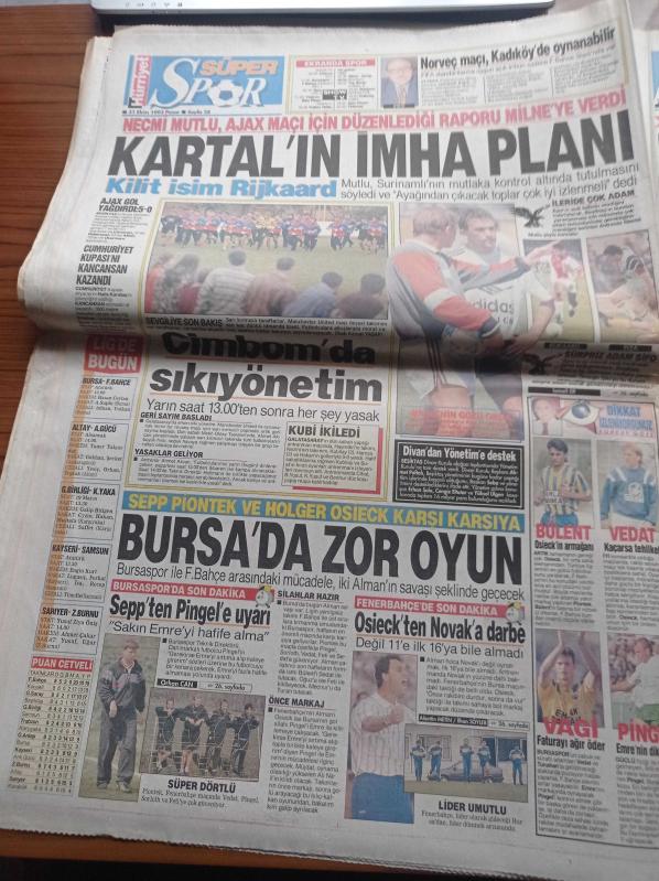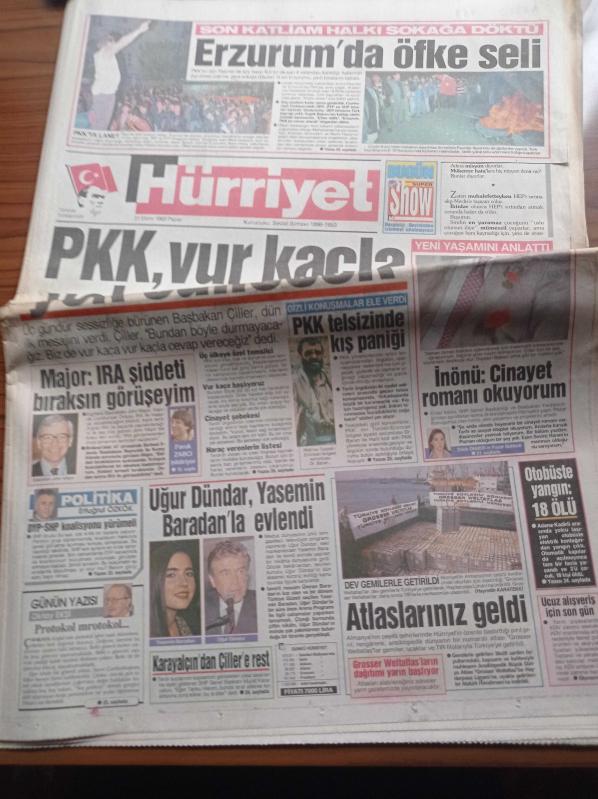 Hürriyet Gazetesi - 31 Ekim 1993 - Uygulamalı Seks Dersi - Levent Yüksel - Fenerbahçe'den Ayrılan Gerson Pişman - Beşiktaş'ın Ajax'ı İmha Planı - Erzurum'da PKK'ya Öfke Seli - Başbakan Tansu Çiller PKK Vur Kaç İle Yok Edilecek - İngiltere Başbakanı John Major IRA Şiddeti Bıraksın Görüşeyim - Uğur Dündar Yasemin Baradan'la Evlendi - PKK Tunceli Sorumlusu Doktor Baran adlı eser Türkçe dilindedir.