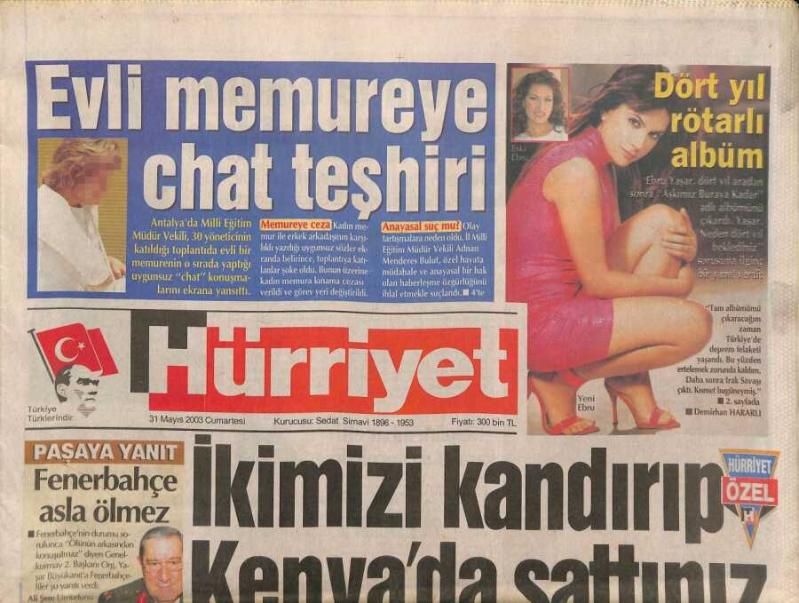 Hürriyet Gazetesi 31 Mayıs 2003 - Ebru Yaşar , Dört Yıl Aradan Sonra Aşkımız Buraya Kadar Adlı Albümünü Çıkardı GZ96467, en son 20 gün önce güncellenmiştir.