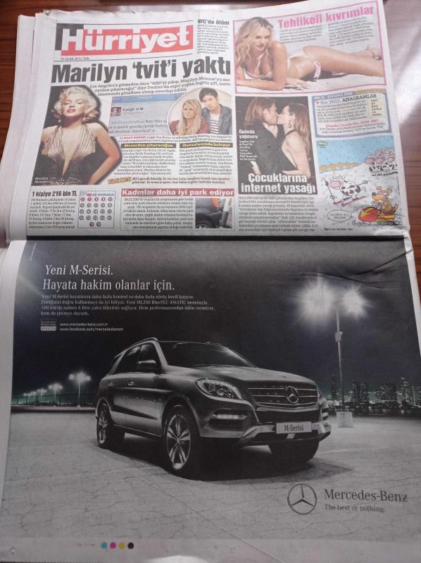 Hürriyet Gazetesi - 31 Ocak 2012 - Beşiktaş'a Serbest Galatasaray'a Yasak - Marilyn Monroe Twiti Yaktı - Sahada Yatan Üstsüz Kadına RTÜK Uyarısı - Yüz Nakli Yapılan Uğur Acar'ın Yeni Yüzde Tercihi Top Sakal- Beşar Esad Ailesini Kaçıramadı- Başbakan Recep Tayyip Erdoğan Ulusa Seslendi - Mini Buzul Çağı Geliyor - Türkiye Futbol Federasyonu Başkanı Mehmet Ali Aydınlar İstifa Yok Yola Devam adlı eser Türkçe dilindedir.