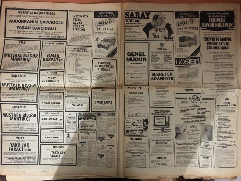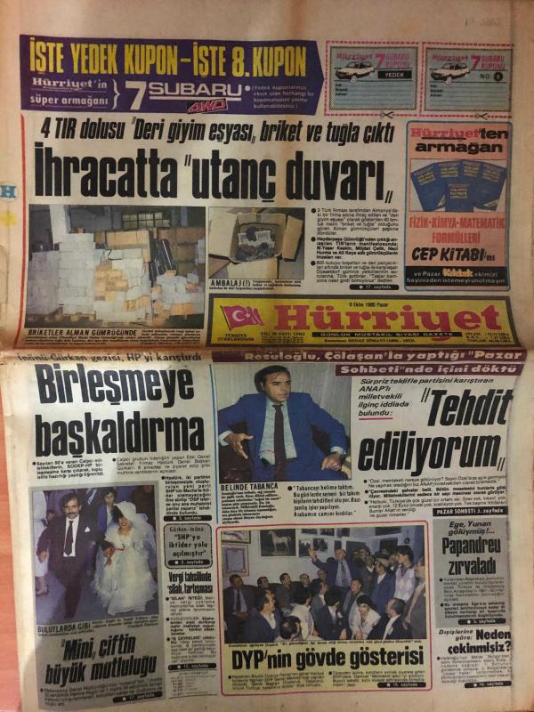 Hürriyet Gazetesi - 6 Ekim 1985 - İhracat - Arto - Almanya - Çelik - Aşı - Ay - Sel - Altın - Müller - Vergi - Ordu - LP - AP - Yilmaz - Meclis - Silah - Memur - Atiye - PAK - Gazete - Uydu - ANAP - Türkiye - Grev - DYP - Siyaset - Ege - Yunanistan - Başbakan - Bulgaristan - BM - Basketbol - Maç - Futbol - Futbolcu - Taraftar - Agu - Fenerbahçe - İsveç - Bordeaux - Kupa - Saray - Puan Durumu - Spor - ABD - Gol - Baha - Maden - Kale - Hakem - Yusuf - Galatasaray - DNA - SEM - Beşiktaş - Rota - Isla - Eder - Televizyon - Teknik Direktör - Ankara - IMF - Volkan - Eren - G7 - Bedrettin Dalan - Belediye - Saygı Öztürk - Modd - Otel - Basın - Dans - Hikaye - Didi - Tank - Bale - MSP - Moda - Selçuk - Tren - LDP - Manga - Tita - Ege Cansen - Mezar - Mario - Ekonomi - Necati Doğru - Zara - Faiz - Çiftçi - Borsa - Caz - Kurtarma - Onur - Fiyatlar - Doktor - Sanayi - Elektrik - Orman - Tarih - Ceza - Transfer adlı eser, Kitap > Süreli Yayınlar kategorisinde İkinci El olarak satıştadır.