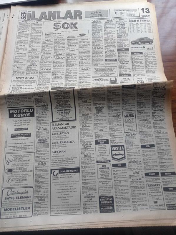 Hürriyet Gazetesi - 6 Haziran 1994 - Üç Büyük Kulübün Kurmayları Transfer Tartıştı - Hasan Özaydın - Alp Yalman - Serdar Bilgili - Rolland Garros'ta İspanyol Zaferi - Nixon'ı Yıkan Adam Bob Woodward Bill Clinton'a Taktı - Kadir İnanır - 7 İnfaz Aynı Silah - Savaş Buldan Behçet Cantürk'ün İnfazında Kullanılan Silahla Öldürüldüğü Ortaya Çıktı - Savaş Buldan'ın Cenazesinde Sıkı Önlem - Savaş Buldan'ın Abisi Necdet Buldan Cantürklerle Husumetimiz Yok- Tansu Çiller - Türksat'ın Fırlatılışı Yine Ertelendi adlı eser, Kitap > Süreli Yayınlar > Gazeteler kategorisinde İkinci El olarak satıştadır.