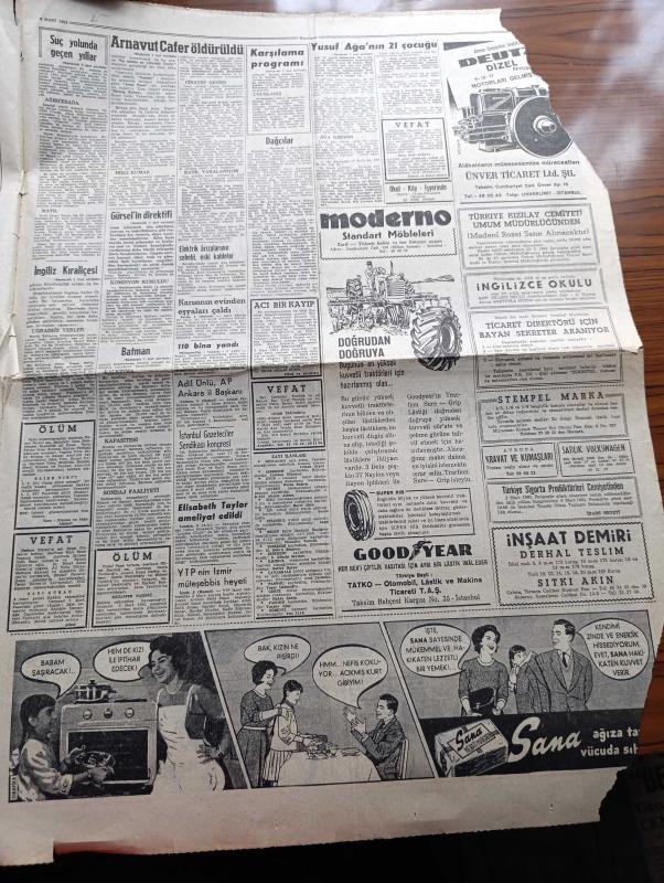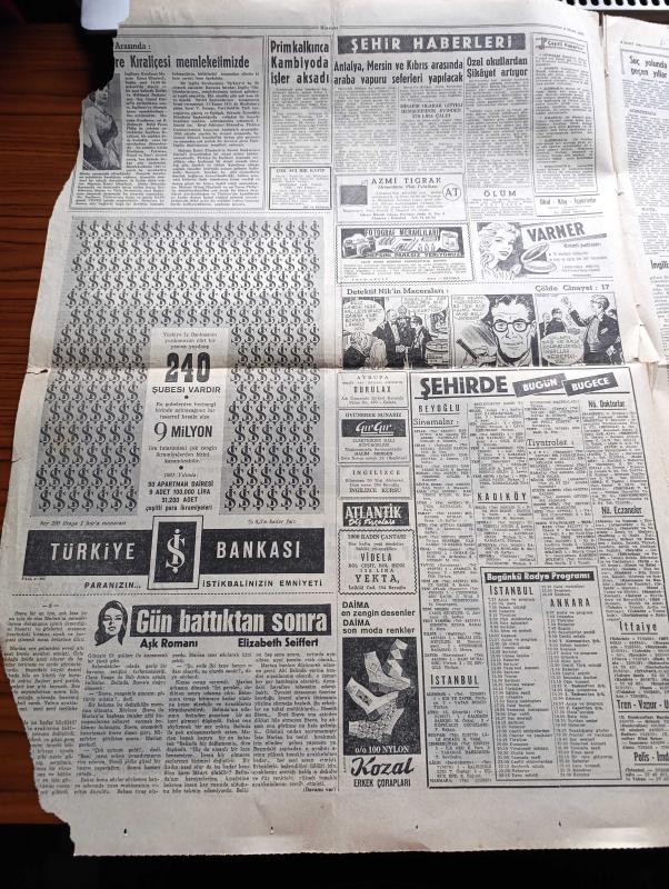 Hürriyet Gazetesi - 6 Mart 1961 - Cemal Gürsel'in Verdiği Direktif - Turizmi Kayıtlayan Engeller Kaldırılacak - İngiltere Kraliçesi Elizabeth Başkan Cemal Gürsel İle Tanışacak - Kooperatif Mevzuatı İçin Bir Tasarı Hazırlanıyor - Yeri Kurşun Arnavut Caferi Sabıkalılar Aleminden Sildi - Batman Petrol Tasfiyehanesi Sayesinde Hızla Kalkınıyor - Haftanın En Mühim Maçı Fenerbahçe Gençlerbirliği Maçı Hadiseli Geçti - Yusuf Ağa'nın 21 Çocuğu Var - Dedektif Nik'in Maceraları Çizgi Roman - Antalya Mersin Ve Kıbrıs Arasında Araba Vapuru Seferleri Yapılacak - İstanbul'da Bugün Sinema Programı - Fenerbahçe Gençlerbirliği Maçında 83. Dakikada Saha Bir Anda Karışıverdi Fotoğraflar - Fatoş Çizgi Roman - Gökler Hakimi Gordon Çizgi Roman - Güngörmüşler Çizgi Roman - Nilüfer Çizgi Roman adlı eser, Kitap > Süreli Yayınlar > Gazeteler > Türkiye > Genel > Günlük kategorisinde İkinci El olarak satıştadır.