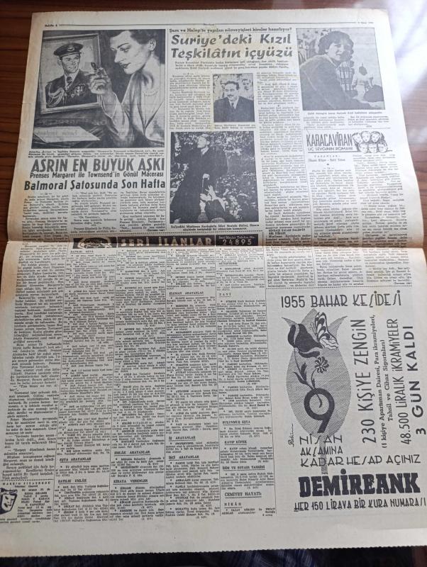 Hürriyet Gazetesi - 6 Nisan 1955 - Güreş Milli Takımının Seçmeleri - Filipin Zelzelesinin Korkunç Tahribatı Fotoğraf - Sarışın Bomba Marilyn Monroe Fil Üstünde Fotoğraf - Yemen İşi Arap Saçına Döndü - Habere Göre İmam Ahmed Asileri Mağlup Ederek Tekrar Tahta Döndü - Futbol Federasyonu Reisi Hasan Polat Takımımız Fransa B Takımı Karşısında Muvaffak Oldu Dedi - Beşiktaş Takımında Uzun Süredir Oynayan Şevket Ve Dr. Hikmet Antrenmanda Fotoğraf - Fenerbahçeliler Toplu Halde İdman Bırakıyor - Merkez Bankası Kanunu Tadilatı - Avusturya Milli Maç Yapacak Teklife Etti - Asrın En Büyük Aşkı Prenses Margaret İle Towsend'in Gönül Macerası Fotoğrafı - Seri İlanlar - Suriye'de Kızıl Teşkilatın İçyüzü - Suriye meclisinin Komünist Mebusu Halit Bektaş ve Avaneleri - Suriye'de Müslüman Kardeşlerin Lideri Mustafa Elsibai Fotoğrafı adlı eser, Kitap > Süreli Yayınlar > Gazeteler > Türkiye > Genel > Günlük kategorisinde İkinci El olarak satıştadır.