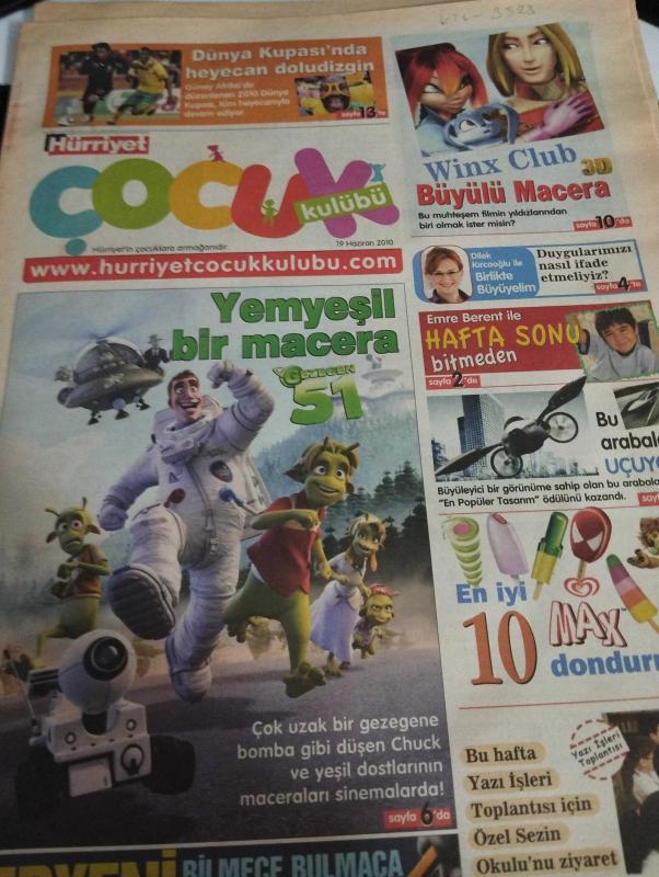 Hürriyet Gazetesi Hürriyet Çocuk Kulübü Gazetesi Doğum Günü Gazetesi -19 Haziran 2010-winx clup büyülü macera- Dünya Kupası'nda heyecan dolu dizgin- duygularınızı nasıl ifade etmeliyiz-yemyeşil bir macera-yepyeni bilmece bulmaca sayfaları- bu arabalar uçuyor- Oyuncak Hikayesi 3-okulda bateri çalıyorum- sitede yangın tatbikatı yapıldı- Saray petibör ile babanıza tatlı bir sürpriz hazırlayın- saray-duygularımızı nasıl ifade etmeliyiz-ben eski ayakkabı-japonların yeni robotları- en iyi 10 Max dondurması- sudoku-lego 2010 Türkiye şampiyonası finali İstinye Park'ta gerçekleşti, Sedat Simavi tarafından kaleme alınmıştır. Hürriyet Gazetesi Hürriyet Çocuk Kulübü Gazetesi Doğum Günü Gazetesi -19 Haziran 2010-winx clup büyülü macera- Dünya Kupası'nda heyecan dolu dizgin- duygularınızı nasıl ifade etmeliyiz-yemyeşil bir macera-yepyeni bilmece bulmaca sayfaları- bu arabalar uçuyor- Oyuncak Hikayesi 3-okulda bateri çalıyorum- sitede yangın tatbikatı yapıldı- Saray petibör ile babanıza tatlı bir sürpriz hazırlayın- saray-duygularımızı nasıl ifade etmeliyiz-ben eski ayakkabı-japonların yeni robotları- en iyi 10 Max dondurması- sudoku-lego 2010 Türkiye şampiyonası finali İstinye Park'ta gerçekleşti adlı eser Türkçe dilindedir.