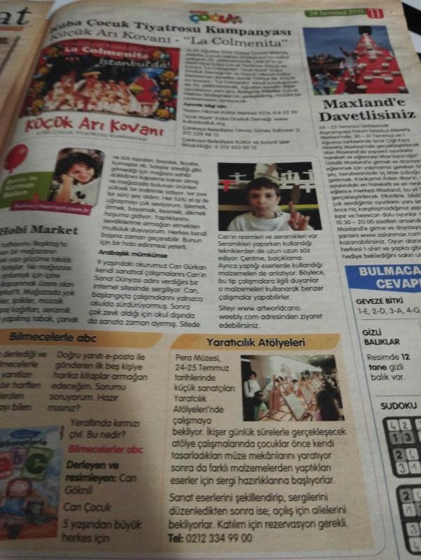 Hürriyet Gazetesi Hürriyet Çocuk Kulübü Gazetesi Doğum Günü Gazetesi -24 Temmuz 2010- Golf- özel bir sahada golf sopası ve gol topu ile yapılan ve kuralı saygı olan bir spor- insan bedenine müthiş bir yolculuk-3 boyutlu Son Hava Bükücü sinemalarda- avril Harikalar Diyarında- barbie'nin Fashion bebekleri göz kamaştırıyor- ata binmeyi çok istiyorum-yaz okuluna gidiyorum çok-moda tasarım öğreneceğim-dev ahtapot ile maceraya yolculuk-izmit Körfezi alarmında-herkesin peşinden koştuğu popüler biri olmak- havaya sıçrayan balina teknenin üzerine düştü-astronot neil Armstrong imzasını çaldılar- Londra'da köpek dondurmacısı-rusya'da reklam için bir eşeği paraşütle uçurdular- küba çocuk tiyatrosu Kumpanyası, Sedat Simavi tarafından kaleme alınmıştır. Hürriyet Gazetesi Hürriyet Çocuk Kulübü Gazetesi Doğum Günü Gazetesi -24 Temmuz 2010- Golf- özel bir sahada golf sopası ve gol topu ile yapılan ve kuralı saygı olan bir spor- insan bedenine müthiş bir yolculuk-3 boyutlu Son Hava Bükücü sinemalarda- avril Harikalar Diyarında- barbie'nin Fashion bebekleri göz kamaştırıyor- ata binmeyi çok istiyorum-yaz okuluna gidiyorum çok-moda tasarım öğreneceğim-dev ahtapot ile maceraya yolculuk-izmit Körfezi alarmında-herkesin peşinden koştuğu popüler biri olmak- havaya sıçrayan balina teknenin üzerine düştü-astronot neil Armstrong imzasını çaldılar- Londra'da köpek dondurmacısı-rusya'da reklam için bir eşeği paraşütle uçurdular- küba çocuk tiyatrosu Kumpanyası adlı eser Türkçe dilindedir.
