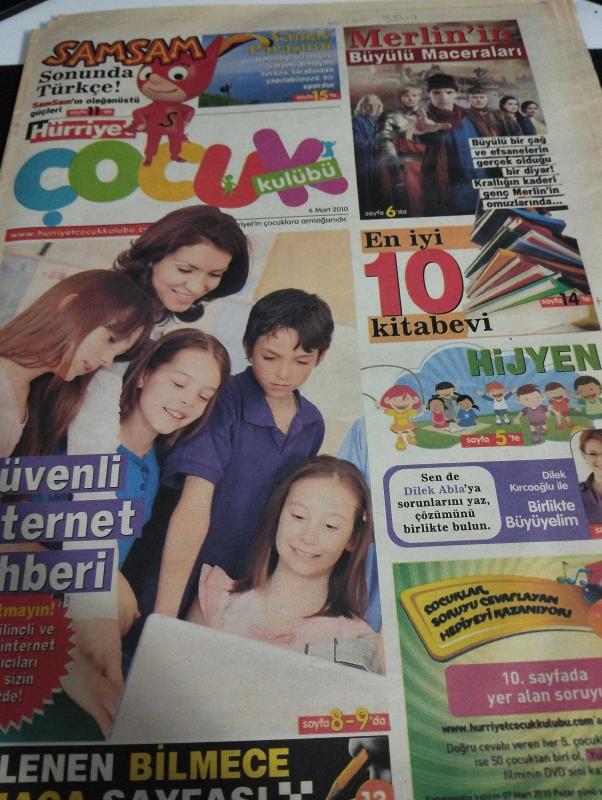 Hürriyet Gazetesi Hürriyet Çocuk Kulübü Gazetesi Doğum Günü Gazetesi -6 Mart 2010- samsam Sonunda Türkçe- yamaç paraşütü herhangi bir sağlık sorunu olmayan herkes tarafından yapılabilecek bir spordur- merli'nin büyülü maceraları-en iyi 10 Kitabevi- güvenli internet rehberi-hijyen- saatler nasıl çalışır-denizlerin anası-artık her akşam yüzüyorum-recep İvedik 3'e bayıldım- toplu yerlerde hijyen kuralları- kendi kendinize analiz edin- hastalıklar nasıl bulaşır- çocuklar soruyu cevaplayan hediyeyi kazanıyor- güvenli internet rehberi- kültür sanat- sudoku- sende üye ol aramıza katıl, Sedat Simavi tarafından kaleme alınmıştır. Hürriyet Gazetesi Hürriyet Çocuk Kulübü Gazetesi Doğum Günü Gazetesi -6 Mart 2010- samsam Sonunda Türkçe- yamaç paraşütü herhangi bir sağlık sorunu olmayan herkes tarafından yapılabilecek bir spordur- merli'nin büyülü maceraları-en iyi 10 Kitabevi- güvenli internet rehberi-hijyen- saatler nasıl çalışır-denizlerin anası-artık her akşam yüzüyorum-recep İvedik 3'e bayıldım- toplu yerlerde hijyen kuralları- kendi kendinize analiz edin- hastalıklar nasıl bulaşır- çocuklar soruyu cevaplayan hediyeyi kazanıyor- güvenli internet rehberi- kültür sanat- sudoku- sende üye ol aramıza katıl adlı eser Türkçe dilindedir.