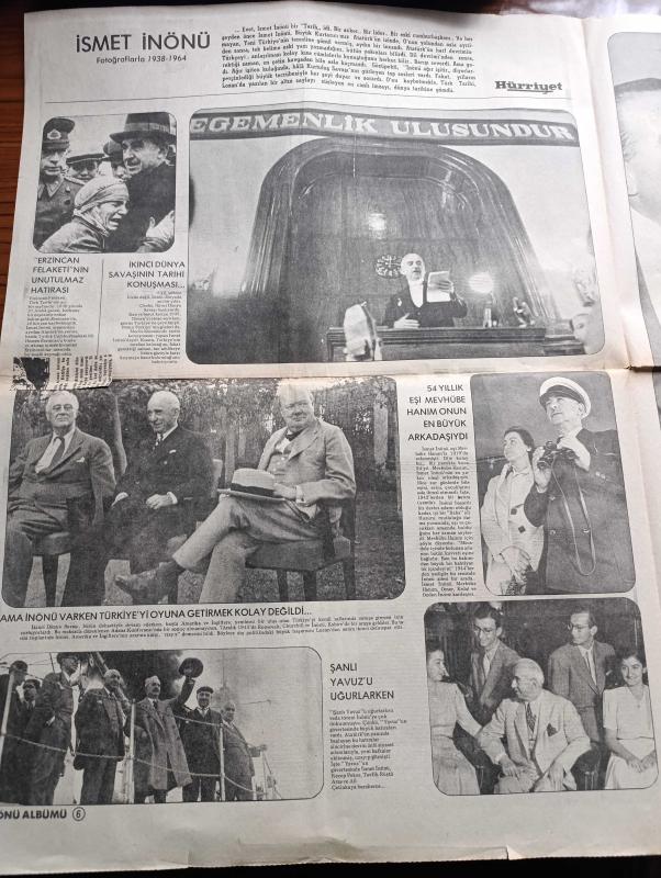 Hürriyet Gazetesi - İsmet İnönü Albümü 2 - 28 Aralık 1973 - İsmet İnönü Yorgun Yılların Yorgun Adamıydı - İsmet İnönü Adnan Menderes'le Kahkaha Atarken Fotoğraf- 54 Yıllık Eşi Mevhibe Hanım Onun En Büyük Arkadaşıydı - Erzincan Felaketinin Unutulmaz Hatırası - Roosevelt ve Churchill İle Birlikte - Şanlı Yavuz Zırhlısını Uğurlarken - Recep Peker - Tevfik Rüştü Aras - Von Papen Hayrandı - İsmet İnönü Ragıp Gümüşpala - Makarios Onun Gözlerinden Büyük Yurt Sevgisini Okuyordu - İki Asker Birarada İsmet İnönü ve Cemal Gürsel - İsmet İnönü Talat Aydemir Ve Arkadaşlarının Devlete Karşı Giriştikleri İhtilal Teşebbüsünü Kan Dökülmeden Bastırmıştı - Günlük Çalışmalarda Devamlı Not Tutardı - İsmet İnönü Top Dürbünü Başında Fotoğraf adlı eser, Kitap > Süreli Yayınlar > Gazeteler > Türkiye > Genel > Günlük kategorisinde İkinci El olarak satıştadır.