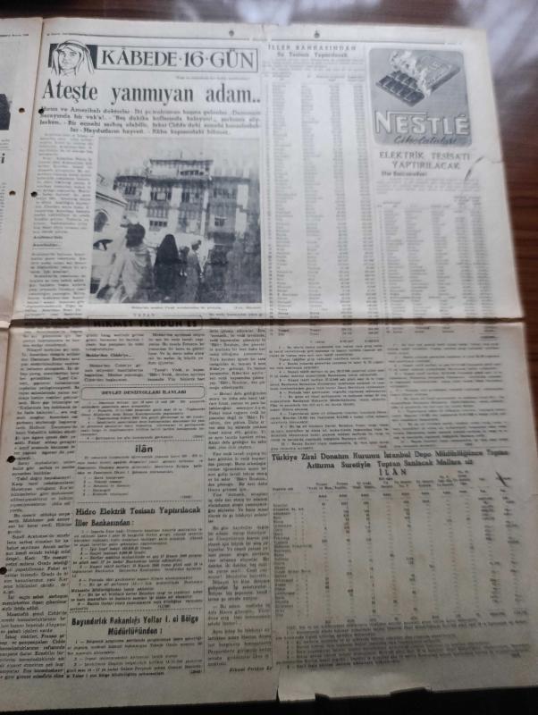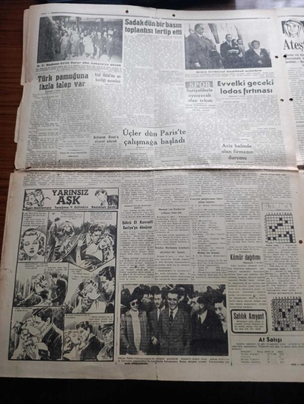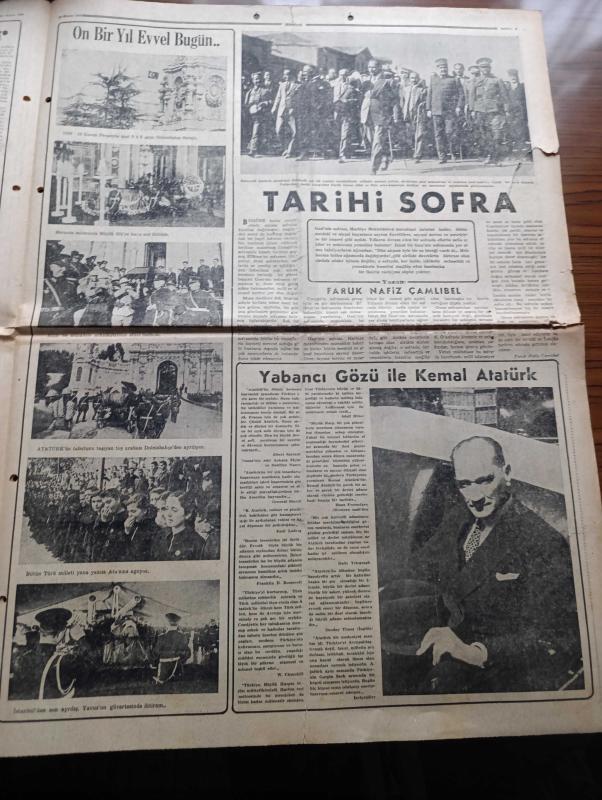 Hürriyet Gazetesi - Turkish Newspaper - 10 Kasım 1949 - büyük yasımızın on birinci yıldönümü - Atatürk'ün fotoğrafı - bugün ebedi şef Atatürk'ü anacağız - Üçler Dün Paris'te çalışmaya başladılar - Başbakan Şemsettin Günaltay Çanakkale'de - Dışişleri bakanımız Necmettin Sadak dün bir basın toplantısı tertip etti - Atıf Ödül'ün askerliği meselesi - Avrupa'ya silah yardımı başlıyor - Hitler'in sığınağında son günler yazan Yüzbaşı Gerhard Boldt Yazı Dizisi - şehir tiyatrosu temsilleri saat 20.30'da başlıyor - Türk prensesi Nilgün yazan Refik Halit Karay Yazı Dizisi - Rita Hayworth'un yapacağı doğum Radyo ile yayınlanacak - Atatürk ve göktürkler yazan Nihat Sami Banarlı - Tavaf şiiri yazan İbrahim Alaaddin Gövsa - tepkili Süpersonik stratosfer uçakları yapıldı - tarihi sofra yazan Faruk Nafiz Çamlıbel - yabancı gözüyle Kemal Atatürk - On bir yıl evvel bugün fotoğraflar - 10 Kasım 1938 Perşembe saat 9'u 5 geçe Dolmabahçe sarayı Fotoğrafı - bütün Türk milleti yana yakılan Atasına ağlıyor adlı eser, Kitap > Süreli Yayınlar > Gazeteler > Türkiye > Genel > Günlük kategorisinde İkinci El olarak satıştadır.