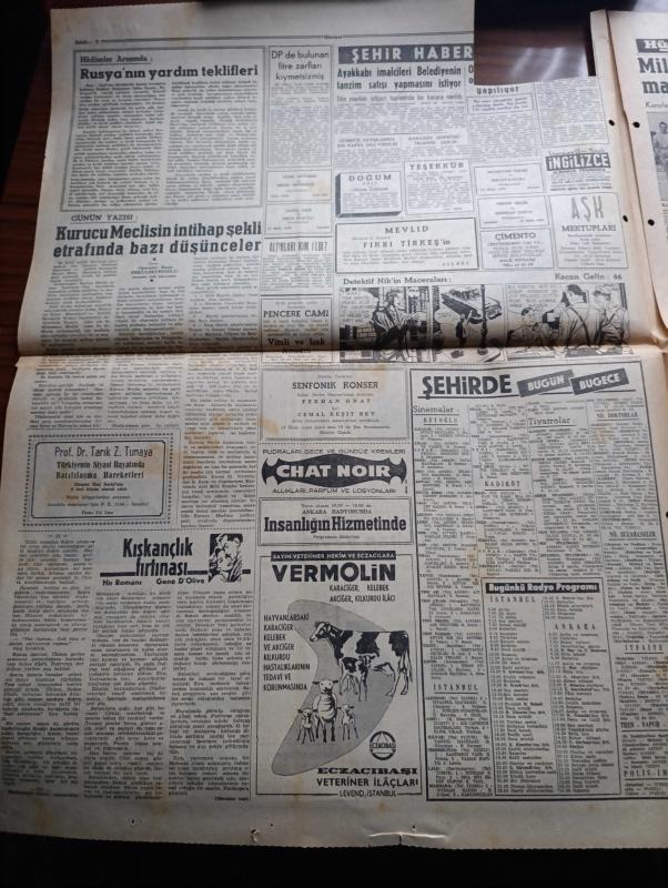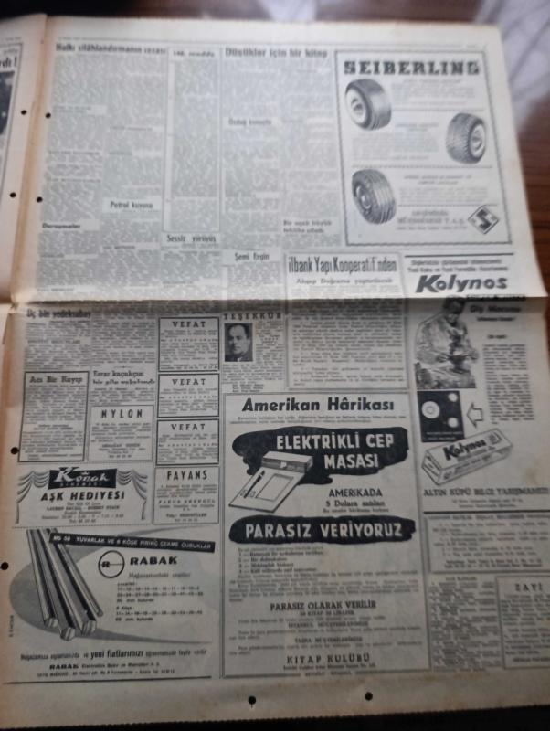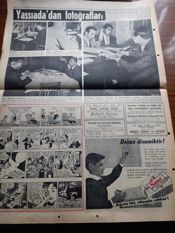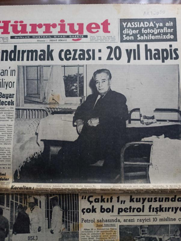 Hürriyet Gazetesi - Turkish Newspaper - 11 Ekim 1960 - halkı silahlandırmak cezası 20 yıl hapis - Sabık iktidarın Büyük Millet Meclisi Başkanı Refik Koraltan'ın Yassıada'da odasında çekilen fotoğraf - Celal Bayar Adnan Menderes Refik koraltan'ın 6 yılda sürülmesi talep ediliyor - Yassıada'da ilk celseyi Reşide Bayar ve diğer 40 sanık ailesi takip edecek - spor sarayı'nda yapılan öğretmenler toplantısında milli birlik komitesinden Muzaffer Özdağ konuşuyor fotoğraf - Çakıt 1 kuyusundan çok Petrol fışkırıyor - Yassıada duruşmaları ile ilgili olarak dolmabahçe'de yapılan bütün hazırlıklar tamamlanmıştır fotoğraf - milli birlik komitesi düşüklerin suçu ile ilgili kitap yayınladı - milli lige bu hafta 12 maçla devam ediliyor - Fenerbahçe kulübünün tertip etti Balkan şehirleri arasındaki futbol turnuvasının programı açıklandı - Enfarktüs vakaları güneşteki lekeler yüzünden çoğalıyor - Brigitte Bardot fotoğraf yanına Vadim'i çağırdı fotoğraf - Yassıada'dan fotoğraflar Yeşilhisar hadiseleri adlı eser, Kitap > Süreli Yayınlar > Gazeteler > Türkiye > Genel > Günlük kategorisinde İkinci El olarak satıştadır.