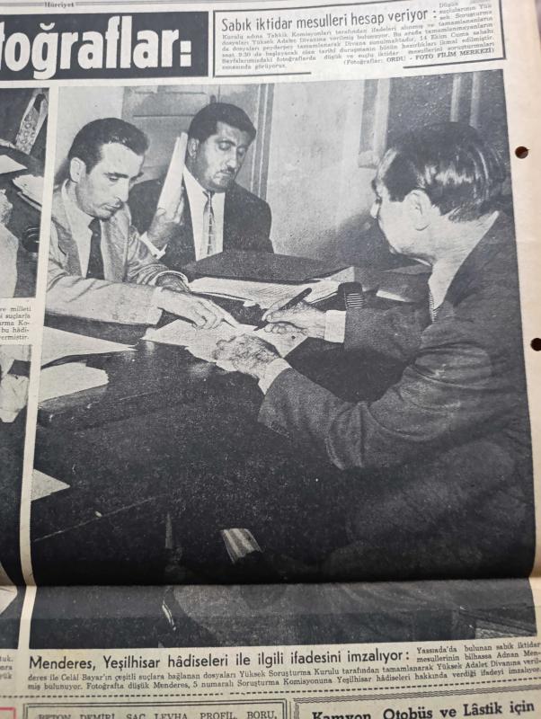 Hürriyet Gazetesi - Turkish Newspaper - 11 Ekim 1960 - halkı silahlandırmak cezası 20 yıl hapis - Sabık iktidarın Büyük Millet Meclisi Başkanı Refik Koraltan'ın Yassıada'da odasında çekilen fotoğraf - Celal Bayar Adnan Menderes Refik koraltan'ın 6 yılda sürülmesi talep ediliyor - Yassıada'da ilk celseyi Reşide Bayar ve diğer 40 sanık ailesi takip edecek - spor sarayı'nda yapılan öğretmenler toplantısında milli birlik komitesinden Muzaffer Özdağ konuşuyor fotoğraf - Çakıt 1 kuyusundan çok Petrol fışkırıyor - Yassıada duruşmaları ile ilgili olarak dolmabahçe'de yapılan bütün hazırlıklar tamamlanmıştır fotoğraf - milli birlik komitesi düşüklerin suçu ile ilgili kitap yayınladı - milli lige bu hafta 12 maçla devam ediliyor - Fenerbahçe kulübünün tertip etti Balkan şehirleri arasındaki futbol turnuvasının programı açıklandı - Enfarktüs vakaları güneşteki lekeler yüzünden çoğalıyor - Brigitte Bardot fotoğraf yanına Vadim'i çağırdı fotoğraf - Yassıada'dan fotoğraflar Yeşilhisar hadiseleri, Sedat Simavi tarafından kaleme alınmıştır. Hürriyet Gazetesi - Turkish Newspaper - 11 Ekim 1960 - halkı silahlandırmak cezası 20 yıl hapis - Sabık iktidarın Büyük Millet Meclisi Başkanı Refik Koraltan'ın Yassıada'da odasında çekilen fotoğraf - Celal Bayar Adnan Menderes Refik koraltan'ın 6 yılda sürülmesi talep ediliyor - Yassıada'da ilk celseyi Reşide Bayar ve diğer 40 sanık ailesi takip edecek - spor sarayı'nda yapılan öğretmenler toplantısında milli birlik komitesinden Muzaffer Özdağ konuşuyor fotoğraf - Çakıt 1 kuyusundan çok Petrol fışkırıyor - Yassıada duruşmaları ile ilgili olarak dolmabahçe'de yapılan bütün hazırlıklar tamamlanmıştır fotoğraf - milli birlik komitesi düşüklerin suçu ile ilgili kitap yayınladı - milli lige bu hafta 12 maçla devam ediliyor - Fenerbahçe kulübünün tertip etti Balkan şehirleri arasındaki futbol turnuvasının programı açıklandı - Enfarktüs vakaları güneşteki lekeler yüzünden çoğalıyor - Brigitte Bardot fotoğraf yanına Vadim'i çağırdı fotoğraf - Yassıada'dan fotoğraflar Yeşilhisar hadiseleri adlı eser Türkçe dilindedir.
