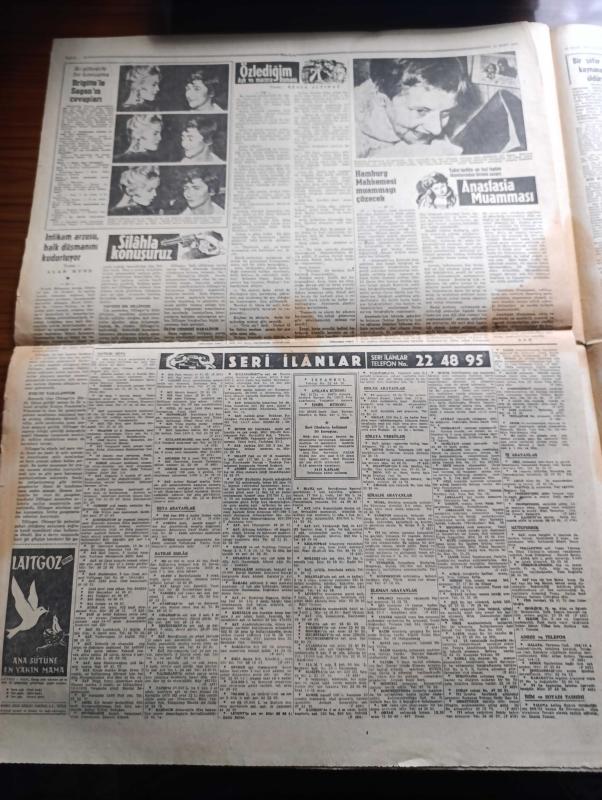 Hürriyet Gazetesi - Turkish Newspaper - 12 Mart 1958 - Türkiye Arap cumhuriyetini resmen tanıdı - Üsküdar vapuru faciası için 2 mahkeme kararı çıktı - batık geminin denizden çıkan bütün parçalarını ihtiyati haciz konuyor - Üsküdar'a vurulan sapanlardan ikisi dün fırtına yüzünden koptu - lodos'a rağmen Üsküdar vapuru çıkarma faaliyetine ara verilmedi - 16 aylık Cem detroit'ten Türkiye'ye mi kaçırıldı - Zapiyon Rum kız lisesinde neler dönüyor - Ege Üniversitesi rektörü Muhittin Erel seçildi - İstanbul'da bugün bu gece sinema tiyatro programı - Turgut Reis yazan Feridun Fazıl Tülbentçi Yazı Dizisi - İki şöhretle bir konuşma Brigitte Bardot ile Françoise Sagan'ın cevapları - Fenerbahçe Manisa karmasını dünkü karşılaşmada 3-1 yendi - Manisalı Hanımlar maçı ayrı yerde izlediler fotoğraf - İstanbulspor Beyoğluspor bugün saat 15.30'da karşılaşıyor - Galatasaray da Eskişehir'de maç yapacak - Galatasaray kaptanı Turgay Şeren dün mukavelesini yeniledi - Çanakkale kupası'nın maçlarının protokolu adlı eser, Kitap > Süreli Yayınlar > Gazeteler > Türkiye > Genel > Günlük kategorisinde İkinci El olarak satıştadır.