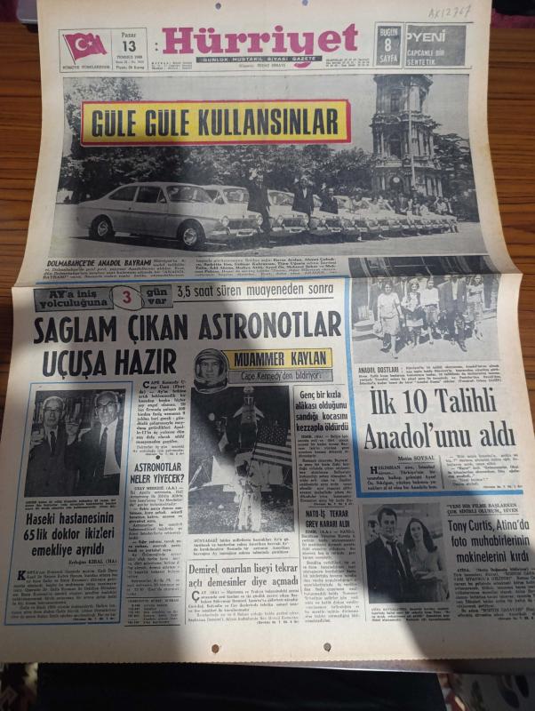 Hürriyet Gazetesi - Turkish Newspaper - 13 Temmuz 1969 - dolmabahçe'de Anadol Bayramı ilk on talihli Anadol'unu aldı fotoğraf - Tony Curtis Atina'da foto muhabirlerinin makinelerini kırdı - Ay'a iniş yolculuğuna 3 gün var - Muammer Kaylan Cape Kennedy'den bildiriyor - sağlam çıkan astronotlar uçuşu hazır - NATO İş tekrar grev kararı aldı - Haseki Hastanesi'nin 65'lik Doktor ikizleri Galip ve Emin Kıcıman emekliye ayrıldı - Süleyman Demirel onarılan liseyi tekrar açtı demesinler diye açmadı - astronotlar neler yiyecek - İstanbul Ankara İzmir Radyosu Programı - Neil Armstrong sivil astronot olduğu için Ay'a ilk defa çıkacak - Galatasaraylı Feridun Öztürk Yıldırım nikahı yapıyor fotoğraf - Göztepe'nin kupadaki rakibi Union meyhaneden yönetiliyor - Galatasaraylı Ergin Gürses sessizce Bursalı oldu - Maraton Acet'in ilk etabın birincisi Gavril üşüdüğünden yarışı terk etti fotoğraf - beden terbiyesi Genel Müdürü Ulvi Yenal Samsun beni korkutuyor dedi - milletlerarası yat yarışması adlı eser, Kitap > Süreli Yayınlar > Gazeteler > Türkiye > Genel > Günlük kategorisinde İkinci El olarak satıştadır.