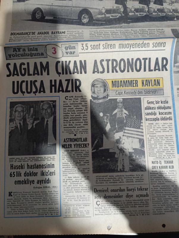 Hürriyet Gazetesi - Turkish Newspaper - 13 Temmuz 1969 - dolmabahçe'de Anadol Bayramı ilk on talihli Anadol'unu aldı fotoğraf - Tony Curtis Atina'da foto muhabirlerinin makinelerini kırdı - Ay'a iniş yolculuğuna 3 gün var - Muammer Kaylan Cape Kennedy'den bildiriyor - sağlam çıkan astronotlar uçuşu hazır - NATO İş tekrar grev kararı aldı - Haseki Hastanesi'nin 65'lik Doktor ikizleri Galip ve Emin Kıcıman emekliye ayrıldı - Süleyman Demirel onarılan liseyi tekrar açtı demesinler diye açmadı - astronotlar neler yiyecek - İstanbul Ankara İzmir Radyosu Programı - Neil Armstrong sivil astronot olduğu için Ay'a ilk defa çıkacak - Galatasaraylı Feridun Öztürk Yıldırım nikahı yapıyor fotoğraf - Göztepe'nin kupadaki rakibi Union meyhaneden yönetiliyor - Galatasaraylı Ergin Gürses sessizce Bursalı oldu - Maraton Acet'in ilk etabın birincisi Gavril üşüdüğünden yarışı terk etti fotoğraf - beden terbiyesi Genel Müdürü Ulvi Yenal Samsun beni korkutuyor dedi - milletlerarası yat yarışması, Sedat Simavi tarafından kaleme alınmıştır. Hürriyet Gazetesi - Turkish Newspaper - 13 Temmuz 1969 - dolmabahçe'de Anadol Bayramı ilk on talihli Anadol'unu aldı fotoğraf - Tony Curtis Atina'da foto muhabirlerinin makinelerini kırdı - Ay'a iniş yolculuğuna 3 gün var - Muammer Kaylan Cape Kennedy'den bildiriyor - sağlam çıkan astronotlar uçuşu hazır - NATO İş tekrar grev kararı aldı - Haseki Hastanesi'nin 65'lik Doktor ikizleri Galip ve Emin Kıcıman emekliye ayrıldı - Süleyman Demirel onarılan liseyi tekrar açtı demesinler diye açmadı - astronotlar neler yiyecek - İstanbul Ankara İzmir Radyosu Programı - Neil Armstrong sivil astronot olduğu için Ay'a ilk defa çıkacak - Galatasaraylı Feridun Öztürk Yıldırım nikahı yapıyor fotoğraf - Göztepe'nin kupadaki rakibi Union meyhaneden yönetiliyor - Galatasaraylı Ergin Gürses sessizce Bursalı oldu - Maraton Acet'in ilk etabın birincisi Gavril üşüdüğünden yarışı terk etti fotoğraf - beden terbiyesi Genel Müdürü Ulvi Yenal Samsun beni korkutuyor dedi - milletlerarası yat yarışması adlı eser Türkçe dilindedir.
