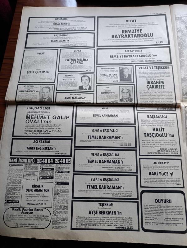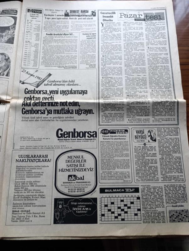 Hürriyet Gazetesi - Turkish Newspaper - 14 Aralık 1981 - polonya'daki gizli Sovyet üsleri alarma geçirildi - Polonya'da Ordu yönetimi el koydu tutuklamalar başladı - Walesa'ya ne oldu - Polonyalı turistler Walesa için ağladı Fotoğrafı - Papa dünyayı Polonya için duaya çağırdı - Polonya'da ilk tutuklananlar arasında Komünist partisinin eski başkanı Gierek de var - Beş bakan istifa etti - THKPC Dev Sol Kurtuluş Türkiye Devrimci Komünist Partisi üyesi 102 militan yakalandı - güzel Farrah Fawcett evlilik yolunda Fotoğrafı - Altan Poyraz İstanbul radyosu müdür muavinliğine atandı - Ahmet Özhan Mevlana törenlerinde ayinhanlık yapıyor Fotoğrafı - Kenan Evren Galatasaray Lisesi'nin 500. Kuruluş yıl dönümü törenlerine katılıyor - Hülya Koçyiğit Müjde Ar Zerrin Egeliler bebek parkta - Muazzez Abacı Mehmet Ali Erbil Erol Evgin büyük Maksimde - Ümit Besen Taksim Lalezar'da - Oba restoranda Necdet Tokatlıoğlu - Galatasaray 0 Altay 0 - Fenerbahçe yine lider - voleybolda Eczacıbaşı zaferi adlı eser, Kitap > Süreli Yayınlar > Gazeteler > Türkiye > Genel > Günlük kategorisinde İkinci El olarak satıştadır.