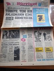 Sayfa Boyutu : 42*58 cm Sayfa Sayısı: 4 Hürriyet Gazetesi Yıpranma, sararmalar, kupon kesiği ve yırtılmalar zamana bağlı olarak görülebilir Bilgilendirme : Delgeçle kenarları delinmiştir Not : Normalde 8 sayfa 4 sayfası eksiktir