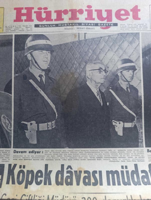Hürriyet Gazetesi - Türkish Newspaper - 16 Ekim 1960 - köpek davası müdafaaya kaldı - Celal Bayar dün üçüncü defa Yüksek Adalet Divanı'nın huzuruna çıkmıştır Fotoğrafı - Yüksek Adalet Divanı İddaa makamının en büyük başı Altay Ömer Egesel fotoğraf - Yüksek Adalet Divanı başkanı Salim Başol fotoğraf - resimde fotoğrafçılara adeta poz veren dava konusu Bastı giyinik halde görülüyor - Nedim Ökmen'in cevabı olamaz diyemedim - Gazi çiftliği müdürü Tarık Rona 200 damızlık koyunu satarak köpeği almak mecburiyetinde kaldığını açıkladı - başsavcı itham ediyor Celal Bayar İstiklal harbinde Galip hoca hüviyetiyle köye olan Şükran borcunu ödemek için bir tazıya tenezzül etmiştir - Dolmabahçe camii'ndeki milli birlik komitesi irtibat bürosu yasak bölge ilan edildi fotoğraf - Celal Bayar'ın kızı Nilüfer Gürsoy babanız Adnan Menderesle dargın mıydı sorusuna bu sualinizi duymamış olayım dedi - başvekil Adnan Menderes'in geyikli hadiseleri ile ilgili telgrafa verdiği cevap - Köy enstitüsü mezunları, Sedat Simavi tarafından kaleme alınmıştır. Hürriyet Gazetesi - Türkish Newspaper - 16 Ekim 1960 - köpek davası müdafaaya kaldı - Celal Bayar dün üçüncü defa Yüksek Adalet Divanı'nın huzuruna çıkmıştır Fotoğrafı - Yüksek Adalet Divanı İddaa makamının en büyük başı Altay Ömer Egesel fotoğraf - Yüksek Adalet Divanı başkanı Salim Başol fotoğraf - resimde fotoğrafçılara adeta poz veren dava konusu Bastı giyinik halde görülüyor - Nedim Ökmen'in cevabı olamaz diyemedim - Gazi çiftliği müdürü Tarık Rona 200 damızlık koyunu satarak köpeği almak mecburiyetinde kaldığını açıkladı - başsavcı itham ediyor Celal Bayar İstiklal harbinde Galip hoca hüviyetiyle köye olan Şükran borcunu ödemek için bir tazıya tenezzül etmiştir - Dolmabahçe camii'ndeki milli birlik komitesi irtibat bürosu yasak bölge ilan edildi fotoğraf - Celal Bayar'ın kızı Nilüfer Gürsoy babanız Adnan Menderesle dargın mıydı sorusuna bu sualinizi duymamış olayım dedi - başvekil Adnan Menderes'in geyikli hadiseleri ile ilgili telgrafa verdiği cevap - Köy enstitüsü mezunları adlı eser Türkçe dilindedir.