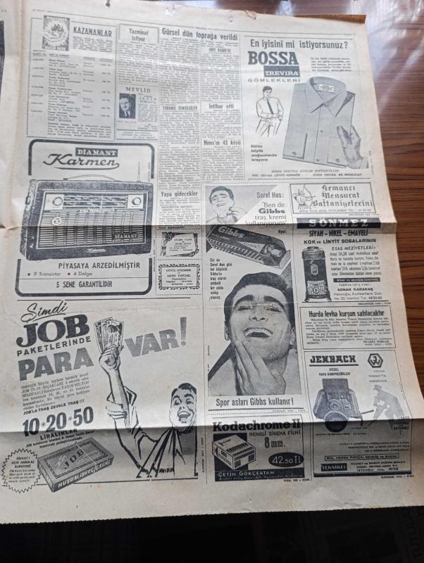 Hürriyet Gazetesi - Turkish Newspaper - 19 Eylül 1966 - büyük bir askeri törenle ve yaşlı gözlerle Cemal Gürsel Dün toprağa verildi - Cemal Gürsel Anıtkabir'in yanında toprağa verilmeden önce top arabasında Fotoğrafı - Melahat Gürsel'in hastalığı devam ediyor - Alman kaptanın denize attığı kayıp genç Akif İyigün'ün babası 1 milyon lira tazminat istiyor fotoğraf - Cemal Gürsel'in en eski okul ve silah arkadaşı Yusuf Adil Egeli aynı yatakta öldü - Hınısın 43 köyü verilecek 100 liraları hazineye başlayacak - Kıbrıs'ta Türklerle Rumlar yine çatıştı - Adana'da tek dersten kalan öğrenciler Ankara'ya kadar yaya gidecekler - Adana trafik müdürü Kemal kermen için soruşturma açıldı - Renault Bulgaristan'da otomobil monte edecek - aşka inandım yazan ve çizen Faruk Geç - Burç falınız - İstanbul Ankara İzmir Radyosu Programı - yeni cereyan sistemi ile su kesilmesi önlenecek - Gibbs tıraş kremi - Bossa gömlekleri - Cemal Gürsel'in son yolculuğu - Törende İsmet İnönü Süleyman Demirel Fotoğrafı, Sedat Simavi tarafından kaleme alınmıştır. Hürriyet Gazetesi - Turkish Newspaper - 19 Eylül 1966 - büyük bir askeri törenle ve yaşlı gözlerle Cemal Gürsel Dün toprağa verildi - Cemal Gürsel Anıtkabir'in yanında toprağa verilmeden önce top arabasında Fotoğrafı - Melahat Gürsel'in hastalığı devam ediyor - Alman kaptanın denize attığı kayıp genç Akif İyigün'ün babası 1 milyon lira tazminat istiyor fotoğraf - Cemal Gürsel'in en eski okul ve silah arkadaşı Yusuf Adil Egeli aynı yatakta öldü - Hınısın 43 köyü verilecek 100 liraları hazineye başlayacak - Kıbrıs'ta Türklerle Rumlar yine çatıştı - Adana'da tek dersten kalan öğrenciler Ankara'ya kadar yaya gidecekler - Adana trafik müdürü Kemal kermen için soruşturma açıldı - Renault Bulgaristan'da otomobil monte edecek - aşka inandım yazan ve çizen Faruk Geç - Burç falınız - İstanbul Ankara İzmir Radyosu Programı - yeni cereyan sistemi ile su kesilmesi önlenecek - Gibbs tıraş kremi - Bossa gömlekleri - Cemal Gürsel'in son yolculuğu - Törende İsmet İnönü Süleyman Demirel Fotoğrafı adlı eser Türkçe dilindedir.