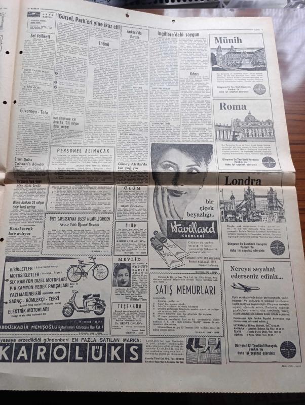 Hürriyet Gazetesi - Turkish Newspaper - 19 Haziran 1964 - Cemal Gürsel'in mektubu - Cemal Gürsel partileri yine ikaz etti - İsmet İnönü senato'da da Kıbrıs işini anlattı - güvenoyu için adalet partisinde karar değişikliği muhtemel - Sadettin Bilgiç kongre'ye kadar Adalet Partisi Genel Başkanı Fotoğrafı - milletvekilleri güvenoyu toto oynadılar - Cumhuriyetçi Köylü Millet Partisi sıkıyönetimin uzatılmasının aleyhinde oy kullanacak - Birleşik Arap Cumhuriyeti başkanı ağır siklet boks şampiyonu Muhammed Ali Clay'i kabul etti - Adana'da dansözler daha az soyunacak - Çarşıkapıdaki yeraltı geçidi tamamlanmadan açıldı ve ilgi gördü fotoğraf - Rumlar el bombası kullanıyor - Sinemalı tren fotoğraf - Bir hayal uğruna çizen Faruk Geç - bizimkiler yazan Kemal Bisalman çizen Sezgin Burak - İstanbul Ankara Radyosu Programı - kesenize göre yaz tatili Side - Manavgat şelalesi fotoğraf - Side'de ortalama bir öğün yemek 7,5 liraya yenilebilir - Side'yi süsleyen tarihi eserlerden biri fotoğraf adlı eser, Kitap > Süreli Yayınlar > Gazeteler > Türkiye > Genel > Günlük kategorisinde İkinci El olarak satıştadır.