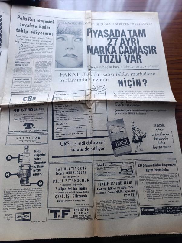 Hürriyet Gazetesi - Turkish Newspaper - 2 Haziran 1965 - CHP ve Adalet Partisi mebus maaşları için aynı anda müracaat edecek - anayasa mahkemesinden zammın iptalini istediler - hava kuvvetlerinin kuruluş yıldönümü törenlerle kutlandı - Mao kayıp - Moskova'da yaz modası Fotoğrafı - Kapalıçarşı'da turistleri dolandıran komisyoncular türedi - Neşe Can Paşmak artist Fikret Hakan kızımın babasıdır dedi Fotoğraf - CMKP petroller için Genel görüşme istiyor - Suat Hayri Ürgüplü Afyon'da müdürleri terletti - İstanbul'da bugün bu gece sinema tiyatro programı - dünya serbest güreş şampiyonası dün başladı - şampiyonada ilk gün 10 galibiyet aldık - İlk galibiyeti dünya şampiyonlarımızdan Hüseyin Akbaş kazandırdı fotoğraf - Hakkı Gürüz Muvahhit Afir ve Semih Zoroğlu hakemliğe veda ettiler fotoğraf - Beykoz'a karşı İzmir'de müşterek cephe kuruldu - Galatasaray ve Beykoz Yarın İzmir'e gidiyor - Zafer kılıcındır filmi Saray sinemasında - Rusya'da batıya ayak uydurdu Moskova'da moda fotoğraflar adlı eser, Kitap > Süreli Yayınlar > Gazeteler > Türkiye > Genel > Günlük kategorisinde İkinci El olarak satıştadır.