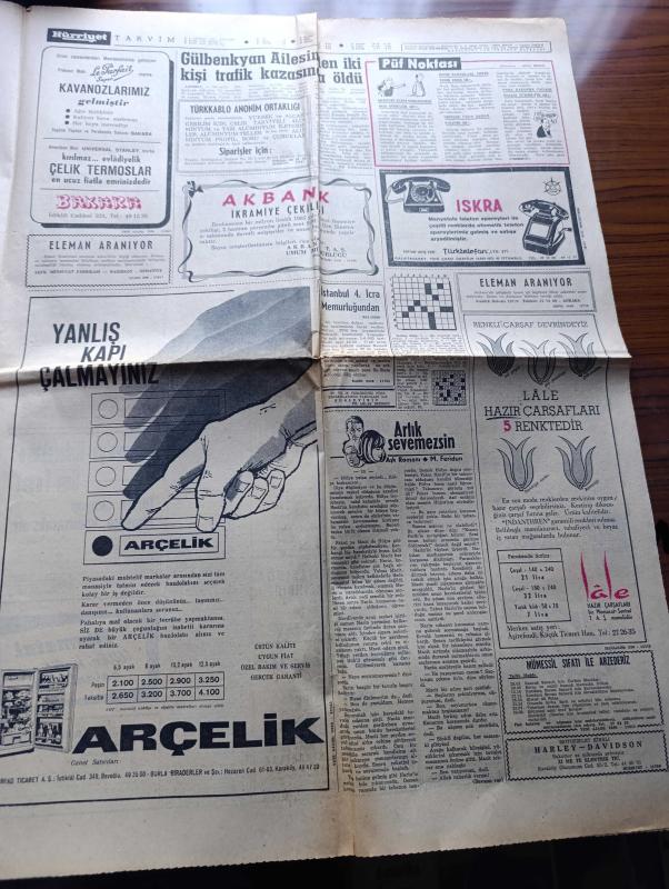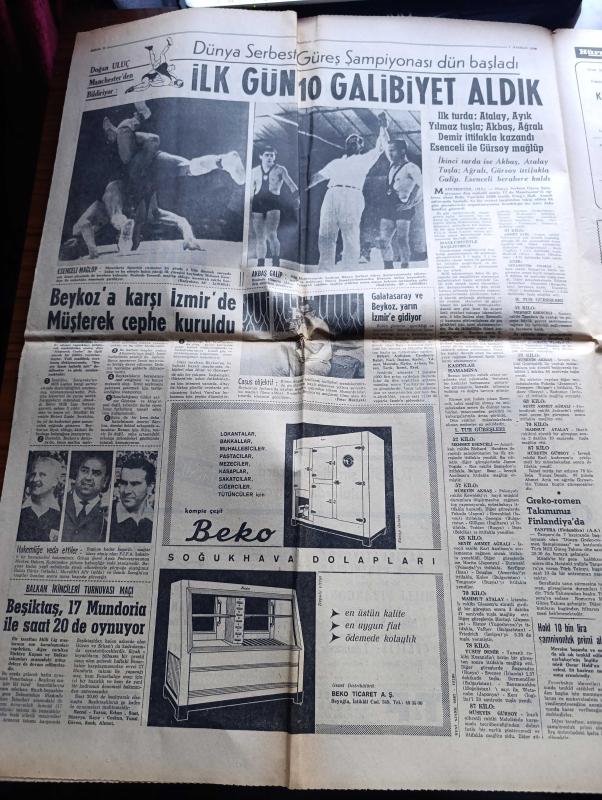 Hürriyet Gazetesi Sayfa Boyutu : 42*58 cm Sayfa Sayısı: 8 Yıpranma, sararmalar, kupon kesiği ve yırtılmalar zamana bağlı olarak görülebilir Not: Tam takım gazetedir
