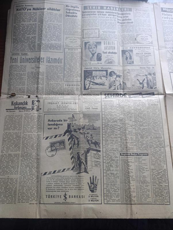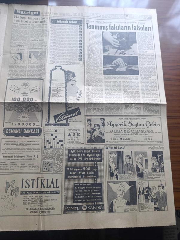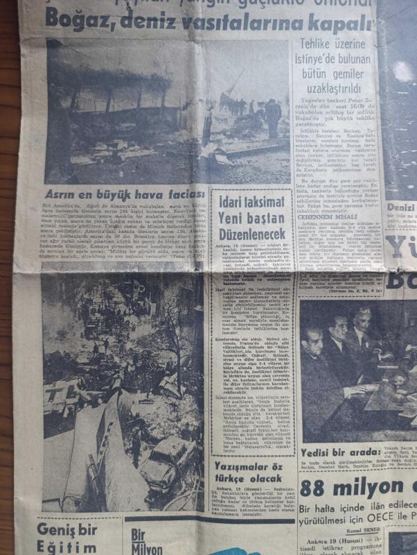 Hürriyet Gazetesi - Turkish Newspaper - 20 Aralık 1960 - Peter Zoraniç tankerindeki müthiş infilak etrafı sarstı fotoğraf - boğazda birçok evlerin camları kırıldı korkunç bir şekilde yayılan yangın güçlükle önlendi - biri Amerika'da biri de Almanya vuku bulan Asrın en büyük hava faciası fotoğraf - Peter Zoraniç tankeri denizi de yaktı fotoğraf - Yüksek Seçim kurulu Başkanı Recai Seçkin - yeraltındaki sularda kayda tabi tutulacak - yassıada'daki sanıklar birer kazazede imiş - yazışmalar öz Türkçe olacak - Behiye Aksoy'un yeni okuduğu plaklar Şençalarda - Necla Engin Çin pavyonunda - Ayşecik şeytan geçti başrolde Zeynep Değirmencioğlu Eşref Kolçak Belgin Doruk Hulusi Kentmen yeni melek ve İnci sinemasında - büyücüler de siyasete karışıyor - Sevim Şenöz'ün yeni okuduğu plak Şençalarda - Fenerbahçe Beşiktaşla pazar günü karşılaşıyor - Galatasaray Kulübü Dün bir bayram günü yaşadı - Fenerbahçe umumi kaptanı Niyazi Sel dün istifa etti - Metin Oktay fotoğraf adlı eser, Kitap > Süreli Yayınlar > Gazeteler > Türkiye > Genel > Günlük kategorisinde İkinci El olarak satıştadır.