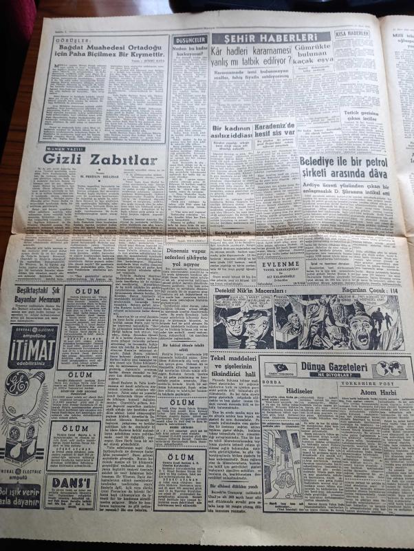 Hürriyet Gazetesi - Turkish Newspaper - 21 Mart 1955 - Suriye'nin son muhtırası Dün elçiye iade olundu - notayı bizzat iade eden başvekil Adnan Menderes - Yüzer havuz Fotoğrafı - italya'daki Ordu maçlarını zaferle açtık Fotoğrafı - Türk ordu takımı 3-0 Hollanda'ya galip geldi - dünya ordulararası futbol şampiyonasında İtalya Mısır yenişemedi - Demokrat Parti İzmir Kongresi bugünden itibaren çalışmalarına başlıyor - Adnan Menderes Endonezya'ya davet edildi - Churchill 1 2 hafta içinde istifa edecek - Ankara koleji öğrencileri dinlenmek için İstanbul'a geldi Haydarpaşa garında Fotoğrafı - Türkiye Masonlar Derneği Kongresi Tepebaşı'nda yapıldı fotoğraf - dünya gazeteleri ne diyor - İstanbul belediyesi ile petrol şirketi arası dava - Adalar gecesi şiir komedi tiyatrosunda takdim eden Muzaffer Tema - Aşk Arzusu çizen Faruk Geç - Türkiye Hollanda Ordu maçından Telecronixle aldığımız fotoğraflar - İsfendiyar ve Ali'nin beraber sürdürdüğü bir akın Fotoğrafı - İstanbul Ankara Radyosu Programı adlı eser, Kitap > Süreli Yayınlar > Gazeteler > Türkiye > Genel > Günlük kategorisinde İkinci El olarak satıştadır.