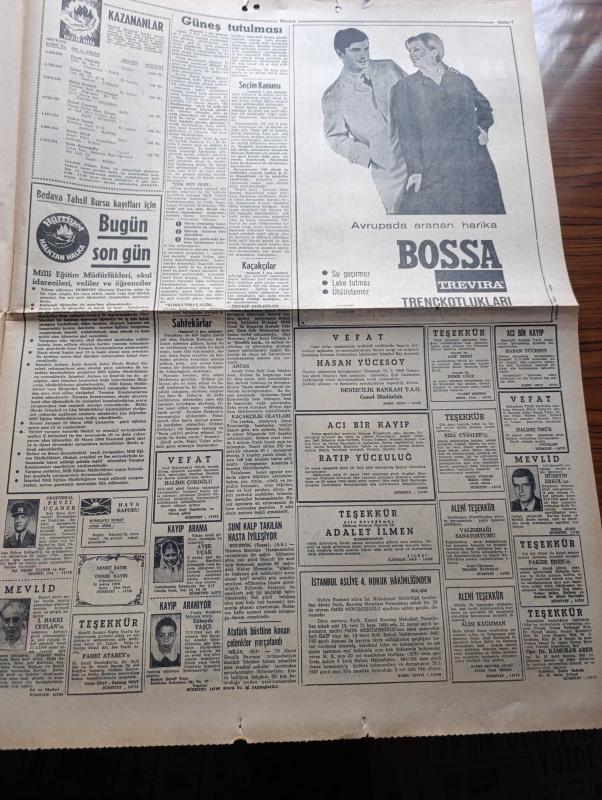 Sayfa Boyutu : 42*58 cm Sayfa Sayısı: 4 Hürriyet Gazetesi Yıpranma, sararmalar, kupon kesiği ve yırtılmalar zamana bağlı olarak görülebilir Bilgilendirme : Delgeçle kenarları delinmiştir Not : Normalde 8 sayfa 4 sayfası eksiktir