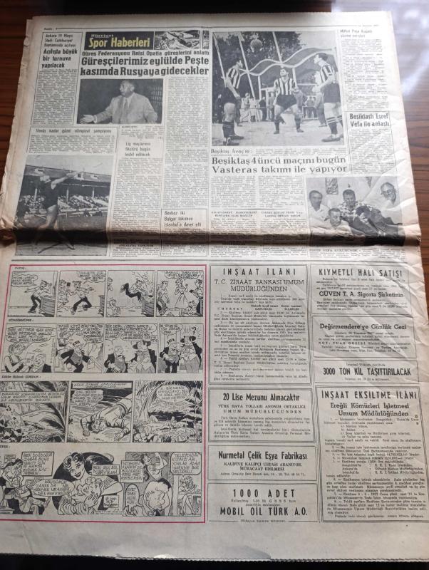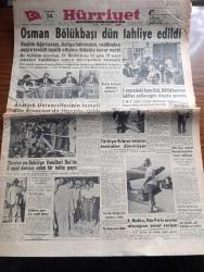 Hürriyet Gazetesi - Turkish Newspaper - 24 Temmuz 1957 - Osman Bölükbaşı Dün tahliye edildi - Osman Bölükbaşı Dün tahliye edildikten sonra Ankara merkez cezaevinin önünde kendisini karşılayanlar arasında fotoğraf - 5 yaşındaki Ayşegül Osman bölükbaşı'nın tahliye edileceğini rüyada görmüş - Keskin ağırcezası Müddeiumumi Lütfü Sağlat aza Halil Özveren Reis Sırrı Kalaycıoğlu ve Aza Nihat Sağın Alp fotoğraf - Atatürk üniversitesinin temeli Dün Erzurum'da törenle atıldı - Reisicumhur Celal Bayar dün gümüş bir pala ile Erzurum'da Atatürk üniversitesinin temeline ilk harcını koyarken yanında Adnan Menderes fotoğraf - dahiliye vekili Namık Gedik dün halde fiyatları tetkik ederken - Türkiye Kıbrıs'ı Taksim tezinden dönmüyor - ikimizin erkeği yazan Vicki Baum Yazı Dizisi - Hürriyet şehitleri için tören yapıldı fotoğraf - Amerikalı iş adamları Ankara'da dün bir basın toplantısı yaptı fotoğraf - Karagöz hokkabaz skeç elektrikli kukla Hakkı Molla - Beşiktaş İsveç'te - 19 Mayıs stadı açılıyor adlı eser, Kitap > Süreli Yayınlar > Gazeteler > Türkiye > Genel > Günlük kategorisinde İkinci El olarak satıştadır.