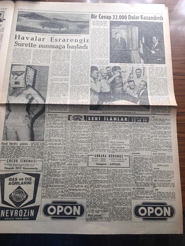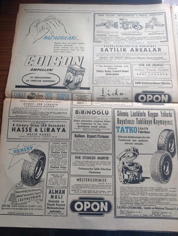 Hürriyet Gazetesi - Turkish Newspaper - 24 aralık 1955 - Cumhuriyet Halk Partisi Hürriyetçiler uğruna Cumhuriyetçi Millet Partisi ile dostluğu bozuyor - öğretmenler hindiyi kaybetti fotoğraf - Celal Bayar'ın Ürdün beyanatı - Dr Mükerrem Sarol meclis tahkikatı açılmasını istiyor - Ekrem Hayri Üstündağ bugün geliyor - Yaşar Doğu ekmek yemeye başladı fotoğraf - Makarios'un 9 yaşında olan yeğeni polislere taşla saldırdı - İmam Hatip okulunda Atatürk köşesi - Şişe suları 10 kuruştan 15'e yükseldi - Dostoyevski'nin kumarbazı gibi biri mahkeme başkatibi kumarın kurbanı oldu - Galata köprüsü'nün tarafında Migros kuruldu fotoğraf - Hitler'i ben yaktım yazan Heinze Linge Yazı Dizisi - Neriman Köksal puro tuvalet sabunu kullanıyor - Edison ampul - Sabite Tur Gönül Yazar Cağaloğlu lokalinde - Müzeyyen Senar bebek bahçesinde - pazar günü Fransa B takımıyla karşılaşacak olan Türk milli futbol takımı Paris'te idman yaptı fotoğraf - Fenerbahçe Beşiktaş maçını Zülbahar Sağnak idare edecek adlı eser, Kitap > Süreli Yayınlar > Gazeteler > Türkiye > Genel > Günlük kategorisinde İkinci El olarak satıştadır.
