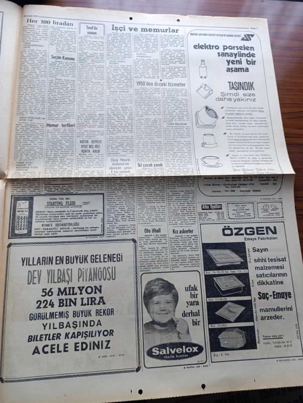Hürriyet Gazetesi - Turkish Newspaper - 29 Aralık 1971 - 1972 Mart'ı vatandaşa yeni yükler getiriyor - her 100 liradan 32 lira vergi alınacak - 1964'te ise aynı paradan 14 lira vergi alınıyordu - İsrail'den sonra Danimarka'da modaya uydu kız askerler Fotoğrafı - Seul'de hayatını kaybeden kurmay Albay Fazıl Yüzbaşıoğlu eşi ve çocukları ile Fotoğrafı - seçim kanunu değişikliği Ocak ayında ele alınacak - gurbetteki sevgili yazan ve çizen Faruk Geç - İstanbul Ankara İzmir Radyosu Programı - bulmaca - Bingöl Kığı'da deprem 35 aile açıkta kaldı - anneleri hükümlü olan çocuklar gündüz okula gidiyor fotoğraf - otomobil içinde hem yemek yeniyor hem sergi izleniyor Fotoğrafı - Marlene Dietrich 70 yaşında fotoğraflar - 1898 model Renault sergide büyük ilgi gördü Fotoğrafı - aktüel ansiklopedisi - bizimkiler çizen Sezgin Burak - Güngörmüşler karikatür - Dedektif Nik karikatür - Fatoş karikatür - oto ithali için döviz gönderenin kazancını ispat etmesi istenecek - işverenler ekonomik tedbir istedi, Sedat Simavi tarafından kaleme alınmıştır. Hürriyet Gazetesi - Turkish Newspaper - 29 Aralık 1971 - 1972 Mart'ı vatandaşa yeni yükler getiriyor - her 100 liradan 32 lira vergi alınacak - 1964'te ise aynı paradan 14 lira vergi alınıyordu - İsrail'den sonra Danimarka'da modaya uydu kız askerler Fotoğrafı - Seul'de hayatını kaybeden kurmay Albay Fazıl Yüzbaşıoğlu eşi ve çocukları ile Fotoğrafı - seçim kanunu değişikliği Ocak ayında ele alınacak - gurbetteki sevgili yazan ve çizen Faruk Geç - İstanbul Ankara İzmir Radyosu Programı - bulmaca - Bingöl Kığı'da deprem 35 aile açıkta kaldı - anneleri hükümlü olan çocuklar gündüz okula gidiyor fotoğraf - otomobil içinde hem yemek yeniyor hem sergi izleniyor Fotoğrafı - Marlene Dietrich 70 yaşında fotoğraflar - 1898 model Renault sergide büyük ilgi gördü Fotoğrafı - aktüel ansiklopedisi - bizimkiler çizen Sezgin Burak - Güngörmüşler karikatür - Dedektif Nik karikatür - Fatoş karikatür - oto ithali için döviz gönderenin kazancını ispat etmesi istenecek - işverenler ekonomik tedbir istedi adlı eser Türkçe dilindedir.