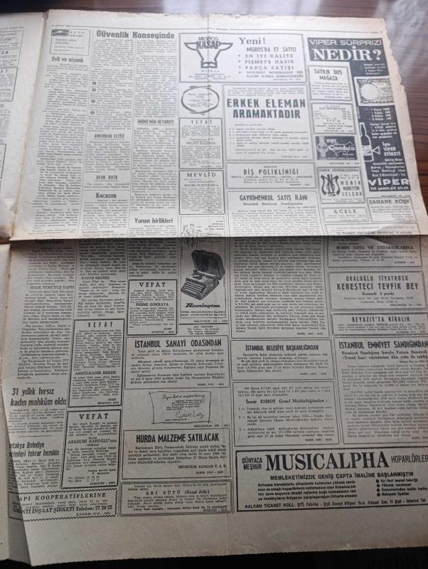Hürriyet Gazetesi - Turkish Newspaper - 29 Şubat 1964 - Rauf Denktaş katliamla anayasa değişmez dedi - Rus manevrası güvenlik konseyi toplantısında akamete uğradı - Numan Menemencioğlu Rusları taraflar arasına nifak sokmakla suçladı - Yunan birlikleri hazırlık yapıyormuş - Yunan devlet radyosu BBC'yi boykot etti - İlk Rus uçağı Lefkoşa'da bayram havası ile karşılandı - kaymakam Ali Yalçın hastanede oturak alemi tertiplemiş - Amerikan başkanı Johnson bir kanalın açılış töreninde iken sabotaj yapıldı - 8 yaşındaki kız doğum yapacak Fotoğrafı - Güneş bazen geç doğar çizen Faruk Geç - Serbest kürsü herkese söz hakkı yöneten Tahsin Öztin - Migros Kasap Teşvikiye mağazası - İsmet İnönü'nün beyanatı - Susuz yaz filminde Hülya Koçyiğit Ve Ulvi Doğan Fotoğrafı - Ajda Pekkan 4 ayda 4 Film çevirmiştir Fotoğrafı - Kimlik Kartı Gönül Yazar Fotoğrafı - Fikret Hakan artık kadın yerine kitapları tercih edeceğim dedi Fotoğrafı - İstanbul'da 15 şarkı - sinemada kulis - filmciler ucuz film yapacak, Sedat Simavi tarafından kaleme alınmıştır. Hürriyet Gazetesi - Turkish Newspaper - 29 Şubat 1964 - Rauf Denktaş katliamla anayasa değişmez dedi - Rus manevrası güvenlik konseyi toplantısında akamete uğradı - Numan Menemencioğlu Rusları taraflar arasına nifak sokmakla suçladı - Yunan birlikleri hazırlık yapıyormuş - Yunan devlet radyosu BBC'yi boykot etti - İlk Rus uçağı Lefkoşa'da bayram havası ile karşılandı - kaymakam Ali Yalçın hastanede oturak alemi tertiplemiş - Amerikan başkanı Johnson bir kanalın açılış töreninde iken sabotaj yapıldı - 8 yaşındaki kız doğum yapacak Fotoğrafı - Güneş bazen geç doğar çizen Faruk Geç - Serbest kürsü herkese söz hakkı yöneten Tahsin Öztin - Migros Kasap Teşvikiye mağazası - İsmet İnönü'nün beyanatı - Susuz yaz filminde Hülya Koçyiğit Ve Ulvi Doğan Fotoğrafı - Ajda Pekkan 4 ayda 4 Film çevirmiştir Fotoğrafı - Kimlik Kartı Gönül Yazar Fotoğrafı - Fikret Hakan artık kadın yerine kitapları tercih edeceğim dedi Fotoğrafı - İstanbul'da 15 şarkı - sinemada kulis - filmciler ucuz film yapacak adlı eser Türkçe dilindedir.