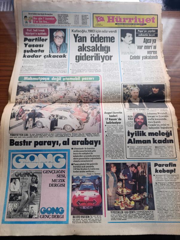 Hürriyet Gazetesi - Turkish Newspaper - 4 Kasım 1982 - kansızlar ateş açarak Köln konsolosluk binamızı bastı Fotoğrafı - Alman polisi çevreyi kordon altına aldı - İşte Dev Sol militanı Fotoğrafı - konsolosluk binasının civarına gelen yüzleri maskeli grup slogan attı Fotoğrafı - Kenan Evren dün de Edirne'de konuştu ordu kışla'ya dönme hazırlığını tamamladı - saat 11.00'de Taksim'de Kenan Evren buradan konuşacak Fotoğrafı - profesör Kaya Çilingiroğlu'nun oğlu Kaya Çilingiroğlu ve arkadaşları tarafından dövülen gazeteci Bediz Doğan Fotoğrafı - saraydaki içgüveyler derleyen Azize Bergin - TKP'nin 28 üyesi yakalandı - Karadeniz Üniversitesi rektörlüğünün kararıyla 23 öğretim üyesinin görevine son verildi - olaylar ve insanlar yazan Hasan Pulur - Ege Üniversitesi vakıf kuruyor - Yaşar holding'in düzenlediği yönetimi geliştirme semineri başladı - Galatasaray Austria Wien'i yendi ama yine de elendi Fotoğrafı - bir zamanlar Celal Bayar'ın atlarına bakan Ahmet Atman şimdi sefalet içinde Foto, Erol Simavi tarafından kaleme alınmıştır. Hürriyet Gazetesi - Turkish Newspaper - 4 Kasım 1982 - kansızlar ateş açarak Köln konsolosluk binamızı bastı Fotoğrafı - Alman polisi çevreyi kordon altına aldı - İşte Dev Sol militanı Fotoğrafı - konsolosluk binasının civarına gelen yüzleri maskeli grup slogan attı Fotoğrafı - Kenan Evren dün de Edirne'de konuştu ordu kışla'ya dönme hazırlığını tamamladı - saat 11.00'de Taksim'de Kenan Evren buradan konuşacak Fotoğrafı - profesör Kaya Çilingiroğlu'nun oğlu Kaya Çilingiroğlu ve arkadaşları tarafından dövülen gazeteci Bediz Doğan Fotoğrafı - saraydaki içgüveyler derleyen Azize Bergin - TKP'nin 28 üyesi yakalandı - Karadeniz Üniversitesi rektörlüğünün kararıyla 23 öğretim üyesinin görevine son verildi - olaylar ve insanlar yazan Hasan Pulur - Ege Üniversitesi vakıf kuruyor - Yaşar holding'in düzenlediği yönetimi geliştirme semineri başladı - Galatasaray Austria Wien'i yendi ama yine de elendi Fotoğrafı - bir zamanlar Celal Bayar'ın atlarına bakan Ahmet Atman şimdi sefalet içinde Foto adlı eser Türkçe dilindedir.
