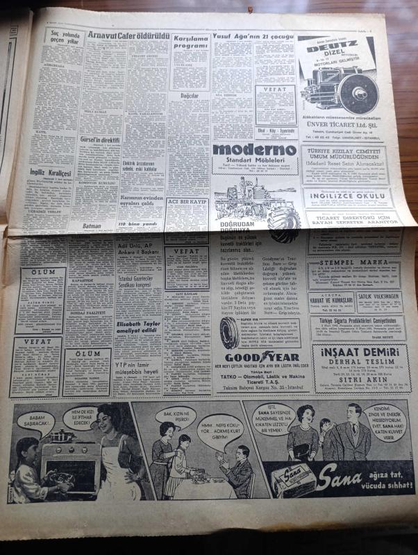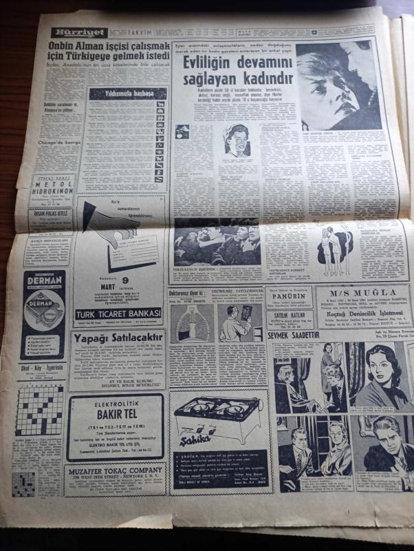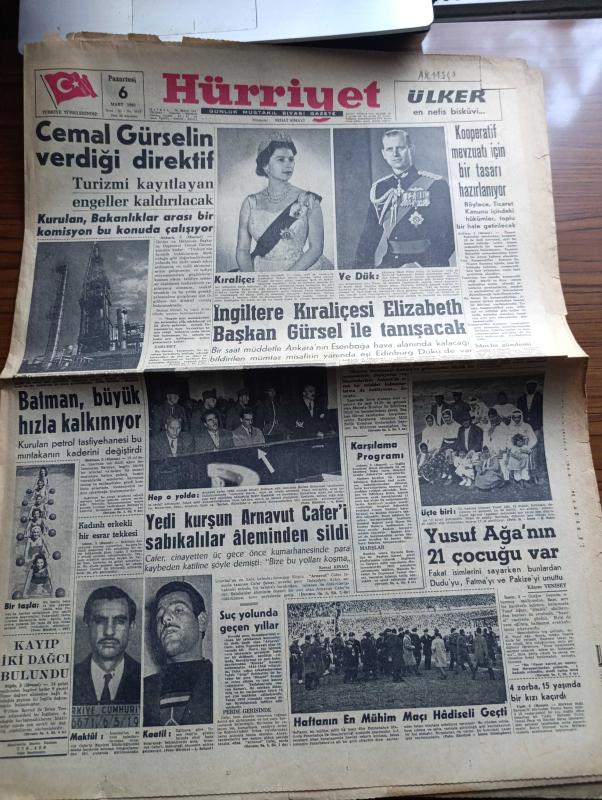 Hürriyet Gazetesi - Turkish Newspaper - 6 Mart 1961 - Cemal Gürsel'in Verdiği Direktif - Turizmi Kayıtlayan Engeller Kaldırılacak - İngiltere Kraliçesi Elizabeth Başkan Cemal Gürsel İle Tanışacak - Kraliçe Elizabeth ve Edinburg Dükü Prens Philip Fotoğrafları - Kooperatif Mevzuatı İçin Bir Tasarı Hazırlanıyor - Yedi Kurşun Arnavut Caferi Sabıkalılar Aleminden Sildi - Batman Petrol Tasfiyehanesi Sayesinde Hızla Kalkınıyor - Haftanın En Mühim Maçı Fenerbahçe Gençlerbirliği Maçı Hadiseli Geçti - Yusuf Ağa'nın 21 Çocuğu Var fotoğraf - Dedektif Nik'in Maceraları Çizgi Roman - Antalya Mersin Ve Kıbrıs Arasında Araba Vapuru Seferleri Yapılacak - İstanbul'da Bugün Sinema Programı - Fenerbahçe Gençlerbirliği Maçında 83. Dakikada Saha Bir Anda Karışıverdi Fotoğraflar - Fatoş karikatür - Gökler Hakimi Gordon karikatür - İstanbul'da bugün bu gece sinema tiyatro programı - DYO - Gırgır elektriksiz halı süpürgeleri - Türkiye İş Bankası - sana döneceğim yazan Mükerrem Engin Yazı Dizisi - Ülker adlı eser, Kitap > Süreli Yayınlar > Gazeteler > Türkiye > Genel > Günlük kategorisinde İkinci El olarak satıştadır.
