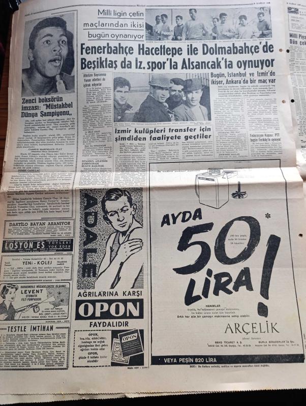 Hürriyet Gazetesi - Turkish Newspaper - 8 Haziran 1963 - 21 Mayıs sanıklarının duruşmasına Dün başlandı - sanıklardan 36'sının idamı istendi - savcı bugün orduyu ve milleti arkadan vuranların yaptığını önünüze seriyoruz dedi - Elebaşı Talat Aydemir ve arkadaşları fotoğraf - Alparslan Türkeş ve taraftarlarının faaliyetleri fotoğraf - Halil Menteş'in dahil olduğu onbirler - Alparslan Türkeş ve arkadaşlarının 4 ila 12 sene hapsi istendi - ağır hapsi istenen diğer 67 sanık - idamı istenenler - Talat Aydemir liderliği Alparslan Türkeş'e kaptırmak istemiyordu fotoğraf - Zeki Müren Grafson plaklarında - Zenci Boksör Muhammed Ali'nin imzası müstakbel dünya şampiyonu fotoğraf - Fenerbahçe Hacettepe maçı Dolmabahçe stadı'nda - Beşiktaş İzmirsporla Alsancak'ta oynuyor - Nuri Sesigüzel ve Nezahat Bayram türküleriyle Grafson plaklarında - bir hafta nerede ve kaça kalınır - Çınarcık - Ayvalık - Fatoş karikatür - Gökler Hakimi Gordon karikatür - Dedektif Nik'in Maceraları Karikatür - Mamak adlı eser, Kitap > Süreli Yayınlar > Gazeteler > Türkiye > Genel > Günlük kategorisinde İkinci El olarak satıştadır.