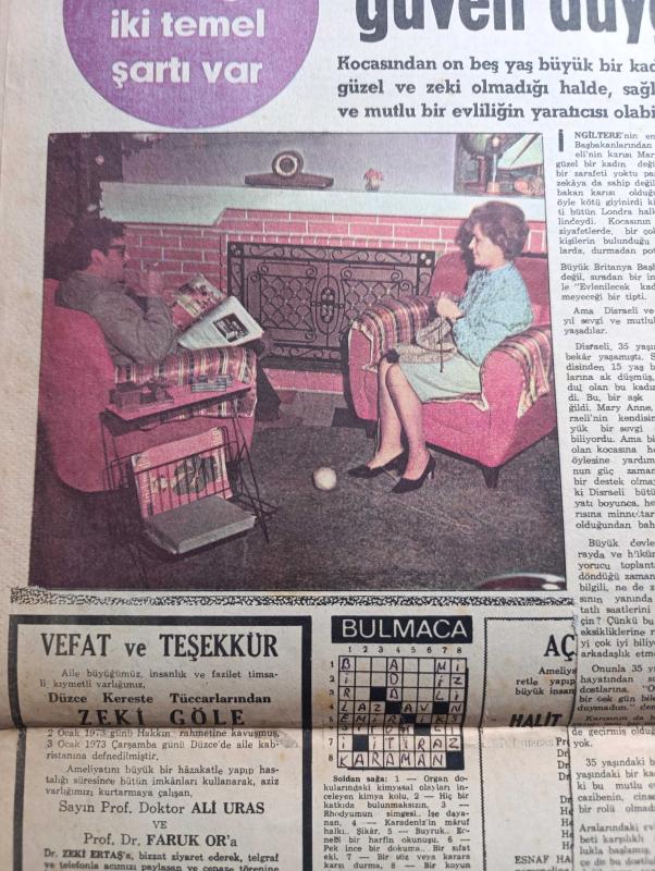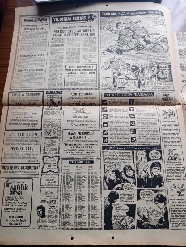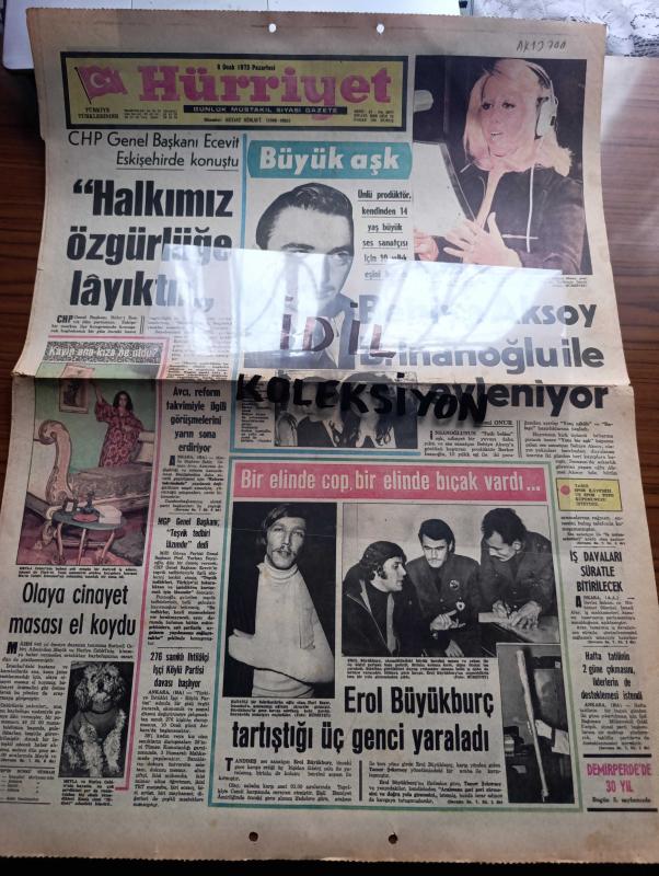 Hürriyet Gazetesi - Turkish Newspaper - 8 Ocak 1973 - Behiye Aksoy Berker İnanoğlu ile evleniyor Fotoğrafı - ünlü prodüktör kendinden 14 yaş büyük ses sanatçısı için 10 yıllık eşini boşadı Fotoğrafı - CHP genel başkanı Bülent Ecevit Eskişehir'de konuştu halkımız özgürlüğe layıktır dedi - Kayıp Ana Kız Meyla ve Nuriye Cabiri olayına cinayet masası el koydu fotoğraf - Milli Güven Partisi Genel başkanı Turhan Feyzioğlu teşvik tedbiri lazımdır dedi - meclis başkanı Sabit Osman Avcı reform takvimi ile ilgili görüşmelerini yarın sona erdiriyor - Erol Büyükburç tartıştığı üç genci yaraladı Fotoğrafı - Erol Büyükburç'un elinde cop ve bıçak vardı Fotoğrafı - 276 sanıklı İhtilalci İşçi Köylü Partisi davası başlıyor - Tarkan yazan ve çizen Sezgin Burak - Burç falınız - geriye bakmayacağım yazan ve çizen Faruk Geç - serbest kürsü herkese söz hakkı yöneten Tahsin Öztin - Yıldırım servis yöneten Erdoğan Arıpınar - İstanbul Ankara İzmir Radyosu Programı - Millet Partisi Genel Sekreteri Hilmi İşgüzar, Sedat Simavi tarafından kaleme alınmıştır. Hürriyet Gazetesi - Turkish Newspaper - 8 Ocak 1973 - Behiye Aksoy Berker İnanoğlu ile evleniyor Fotoğrafı - ünlü prodüktör kendinden 14 yaş büyük ses sanatçısı için 10 yıllık eşini boşadı Fotoğrafı - CHP genel başkanı Bülent Ecevit Eskişehir'de konuştu halkımız özgürlüğe layıktır dedi - Kayıp Ana Kız Meyla ve Nuriye Cabiri olayına cinayet masası el koydu fotoğraf - Milli Güven Partisi Genel başkanı Turhan Feyzioğlu teşvik tedbiri lazımdır dedi - meclis başkanı Sabit Osman Avcı reform takvimi ile ilgili görüşmelerini yarın sona erdiriyor - Erol Büyükburç tartıştığı üç genci yaraladı Fotoğrafı - Erol Büyükburç'un elinde cop ve bıçak vardı Fotoğrafı - 276 sanıklı İhtilalci İşçi Köylü Partisi davası başlıyor - Tarkan yazan ve çizen Sezgin Burak - Burç falınız - geriye bakmayacağım yazan ve çizen Faruk Geç - serbest kürsü herkese söz hakkı yöneten Tahsin Öztin - Yıldırım servis yöneten Erdoğan Arıpınar - İstanbul Ankara İzmir Radyosu Programı - Millet Partisi Genel Sekreteri Hilmi İşgüzar adlı eser Türkçe dilindedir.