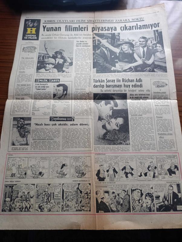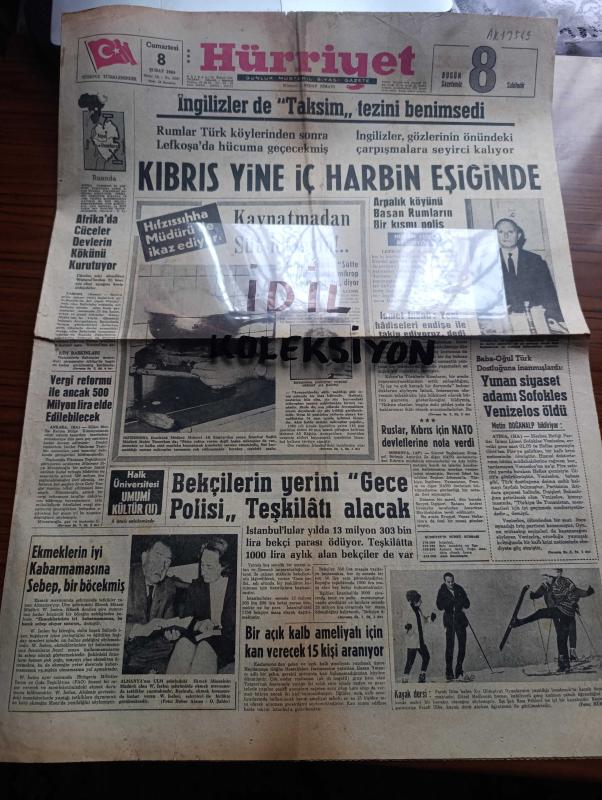 Hürriyet Gazetesi - Turkish Newspaper - 8 Şubat 1964 - Kıbrıs yine iç harbin eşiğinde - İngilizler de Kıbrıs'ta Taksim tezini benimsedi - Türk dostu Yunan siyaset adamı Sofokles Venizelos öldü Fotoğrafı - Hıfzıssıhha enstitüsü müdürü Mehmet Ali Kağıtçı kaynatmadan süt içmeyin dedi fotoğraf - Afrika'da cüceler devlerin kökünü kurutuyor - bekçilerin yerini gece polisi teşkilatı alacak - arpalık köyünü basan Rumların bir kısmı polis - İsmet İnönü yeni hadiseleri endişe ile takip ediyoruz dedi - Ruslar Kıbrıs için NATO devletlerine nota verdi - Amerikalılar İstanbul'a yeraltı geçitleri yapmak istiyor - Güneş bazen geç doğar çizen Faruk Geç - İstanbul'da bugün bu gece sinema tiyatro programı - burç falı - serbest kürsü herkese söz hakkı yöneten Tahsin Öztin - Türkan Şoray İle Rüçhan Adlı darılıp barışmayı huy edindi - Türkan Şoray ile Ekrem Boranın Kader kapıyı çaldı filminde Aşk sahnesi Fotoğrafı - Aliki Vuyuklaki ile Orhan Günşiray aynı filmde başrolde oynuyordu Fotoğrafı - müzik dünyamız, Sedat Simavi tarafından kaleme alınmıştır. Hürriyet Gazetesi - Turkish Newspaper - 8 Şubat 1964 - Kıbrıs yine iç harbin eşiğinde - İngilizler de Kıbrıs'ta Taksim tezini benimsedi - Türk dostu Yunan siyaset adamı Sofokles Venizelos öldü Fotoğrafı - Hıfzıssıhha enstitüsü müdürü Mehmet Ali Kağıtçı kaynatmadan süt içmeyin dedi fotoğraf - Afrika'da cüceler devlerin kökünü kurutuyor - bekçilerin yerini gece polisi teşkilatı alacak - arpalık köyünü basan Rumların bir kısmı polis - İsmet İnönü yeni hadiseleri endişe ile takip ediyoruz dedi - Ruslar Kıbrıs için NATO devletlerine nota verdi - Amerikalılar İstanbul'a yeraltı geçitleri yapmak istiyor - Güneş bazen geç doğar çizen Faruk Geç - İstanbul'da bugün bu gece sinema tiyatro programı - burç falı - serbest kürsü herkese söz hakkı yöneten Tahsin Öztin - Türkan Şoray İle Rüçhan Adlı darılıp barışmayı huy edindi - Türkan Şoray ile Ekrem Boranın Kader kapıyı çaldı filminde Aşk sahnesi Fotoğrafı - Aliki Vuyuklaki ile Orhan Günşiray aynı filmde başrolde oynuyordu Fotoğrafı - müzik dünyamız adlı eser Türkçe dilindedir.