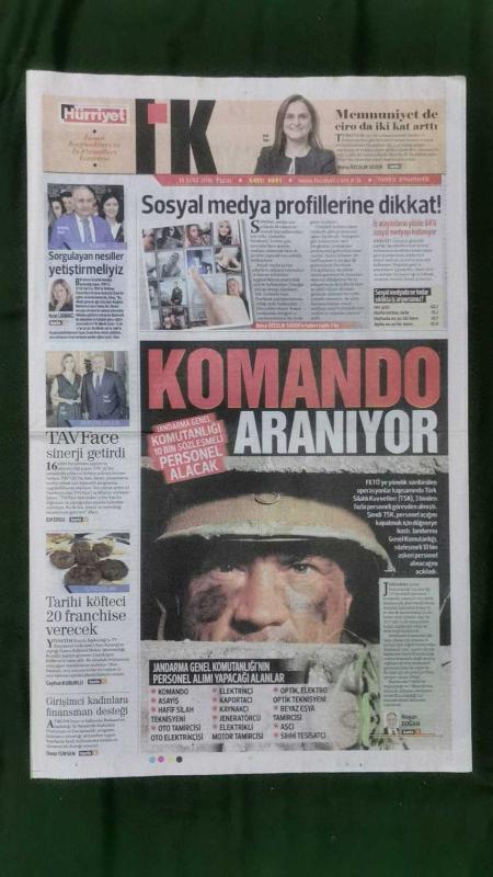Kitap 2016 yılında yayınlanmıştır. 6 sayfadır. Hürriyet İ K Gazete 11 Eylül 2016 Komando Aranıyor,Sosyal Medya Profillerine Dikkat !,Bedrettin Dalan,Sani Şener,Elif Ergu,Aylin Toper,Kadın Girişimcilere Finansman Desteği,Atilla Keskin,Zekeriya Bilici,Burak Akın,Seçil Kurdoğlu,D-Smart Reklamı adlı eser Türkçe dilindedir.