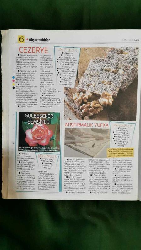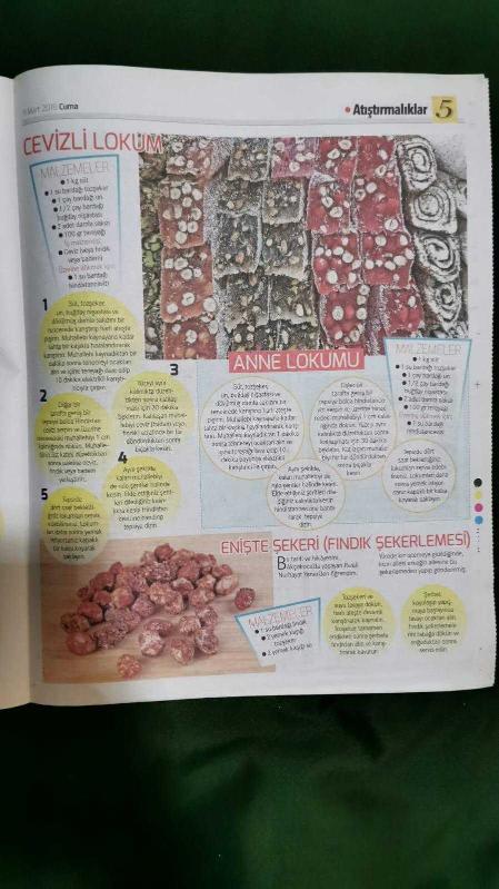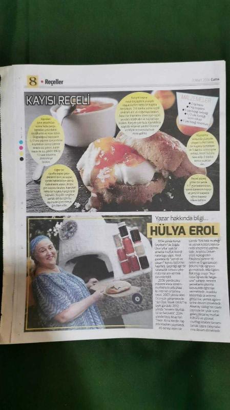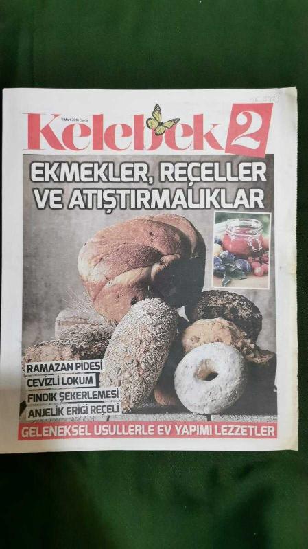 Kitap 2016 yılında yayınlanmıştır. 8 sayfadır. Hürriyet Kelebek 2 Gazete 11 Mart 2016 Ekmekler Reçeller ve Atıştırmalıklar,Ramazan Pidesi,Cevizli Lokum,Fındık Şekerlemesi,Anjelik Eriği Reçeli,Ekmek ve Mayalar,Ekşi Mayadan Ekmek,Enişte Şekeri,Cezerye,Çilek Reçeli,Ceviz Reçeli,Kayısı Reçeli,Hülya Erol adlı eser Türkçe dilindedir.
