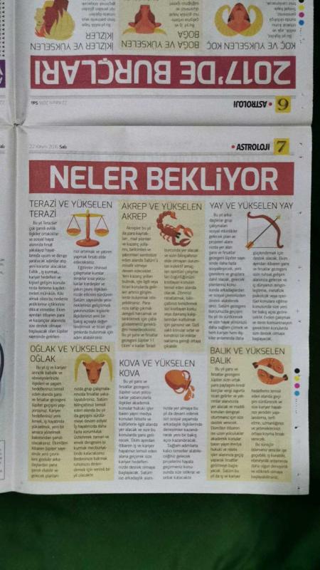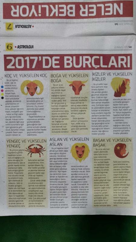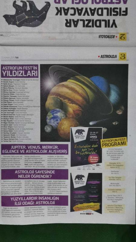Kitap 2017 yılında yayınlanmıştır. 8 sayfadır. Hürriyet Kelebek 2 Gazete 2017'de Burçları Neler Bekliyor,Astroloji'nin Tarihçesi,Astroloji Fal Mıdır ?,2017'ye Kısa Bir Bakış,Yıldızlar Fısıldayacak Astrologlar Anlatacak,Astrofun Fest'in Yıldızları,Astroloji Sayesinde Neler Öğrendik,Yüzyıllardır İnsanlığın İlgi Odağı:Astroloji adlı eser Türkçe dilindedir.